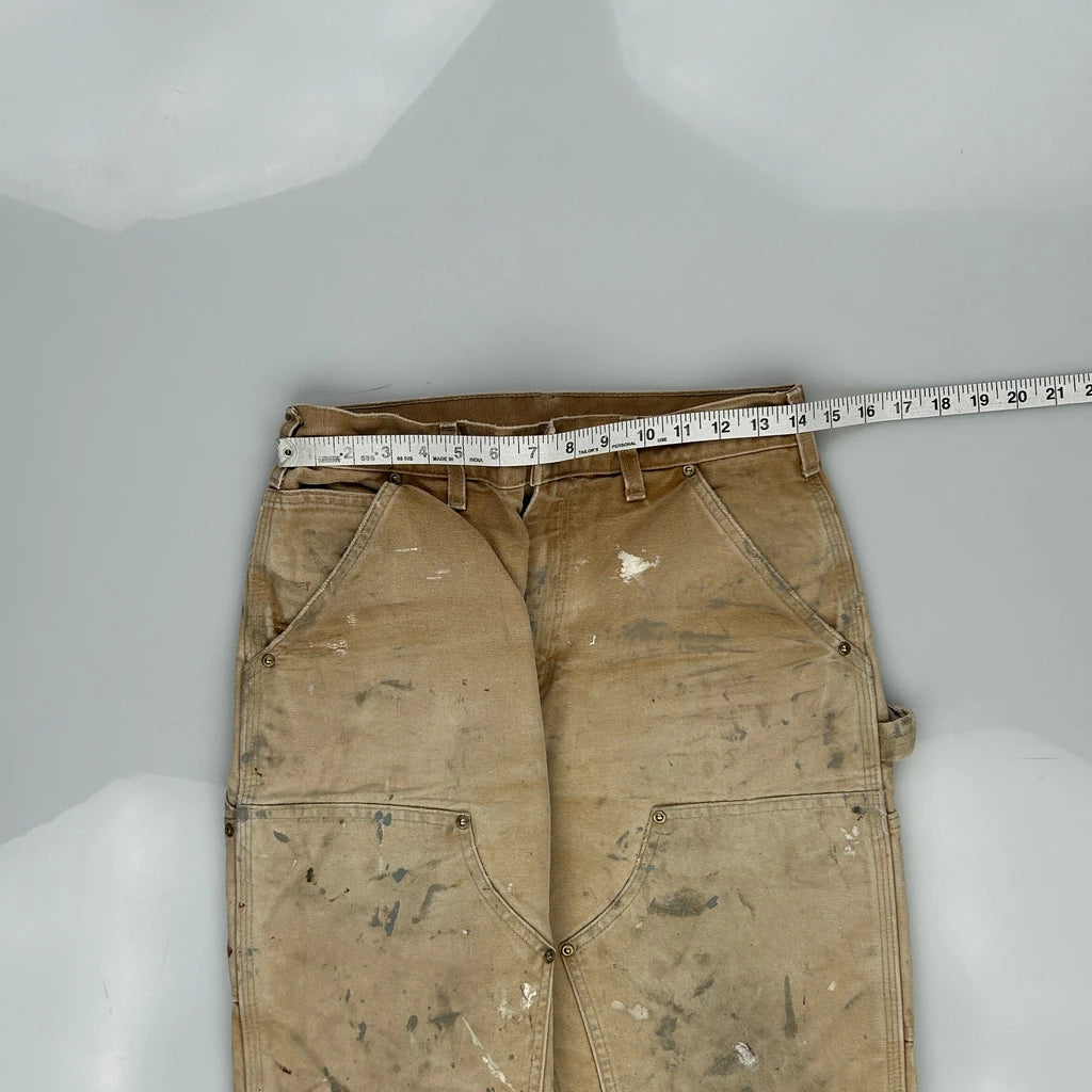 Heavily Worn Carhartt Double Knee Carpenter Trousers - 28W 28L Brown Cotton