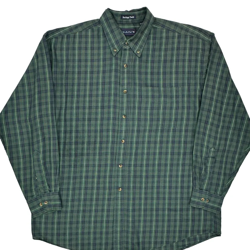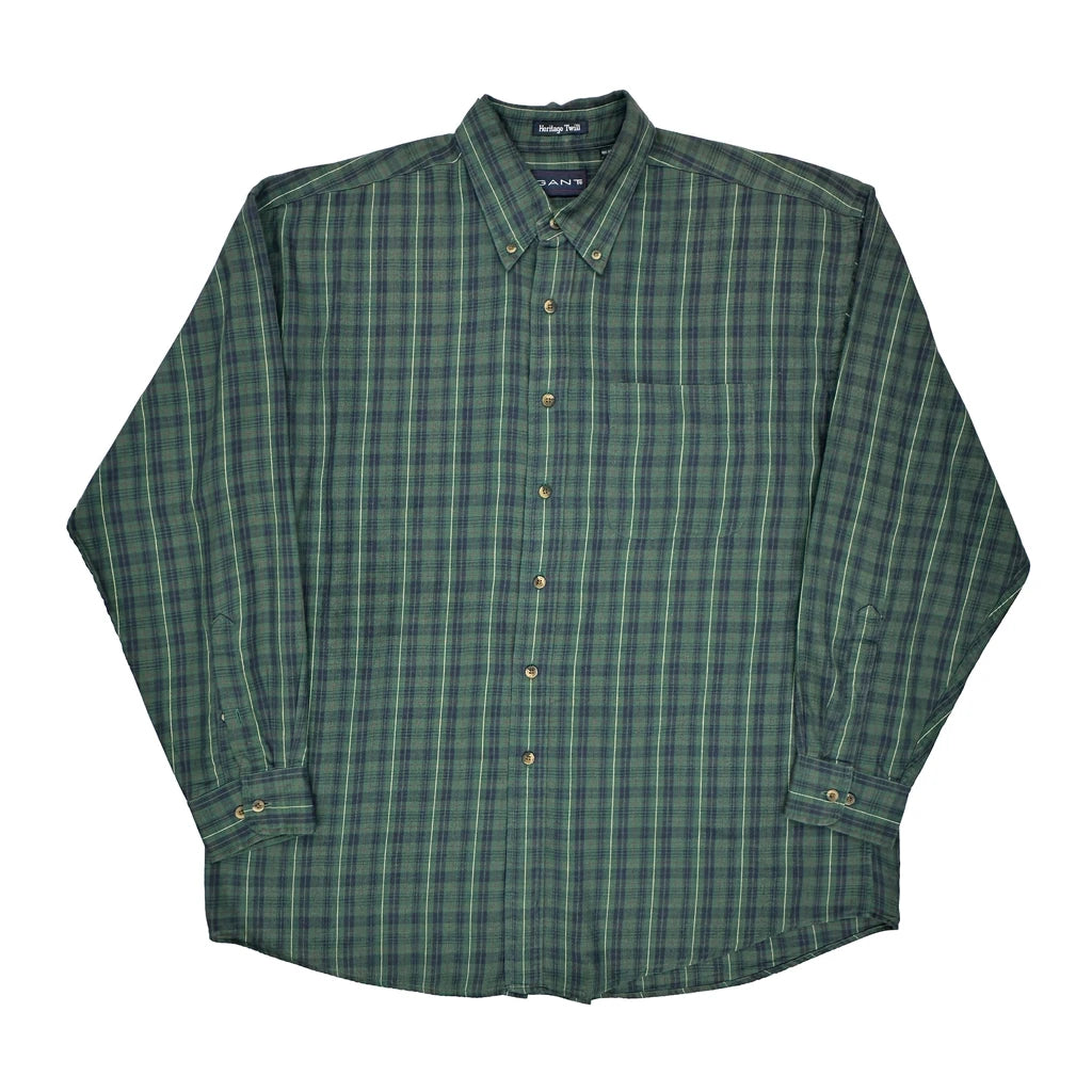 Heritage Twill Gant Checked Shirt - XL Green Cotton Blend