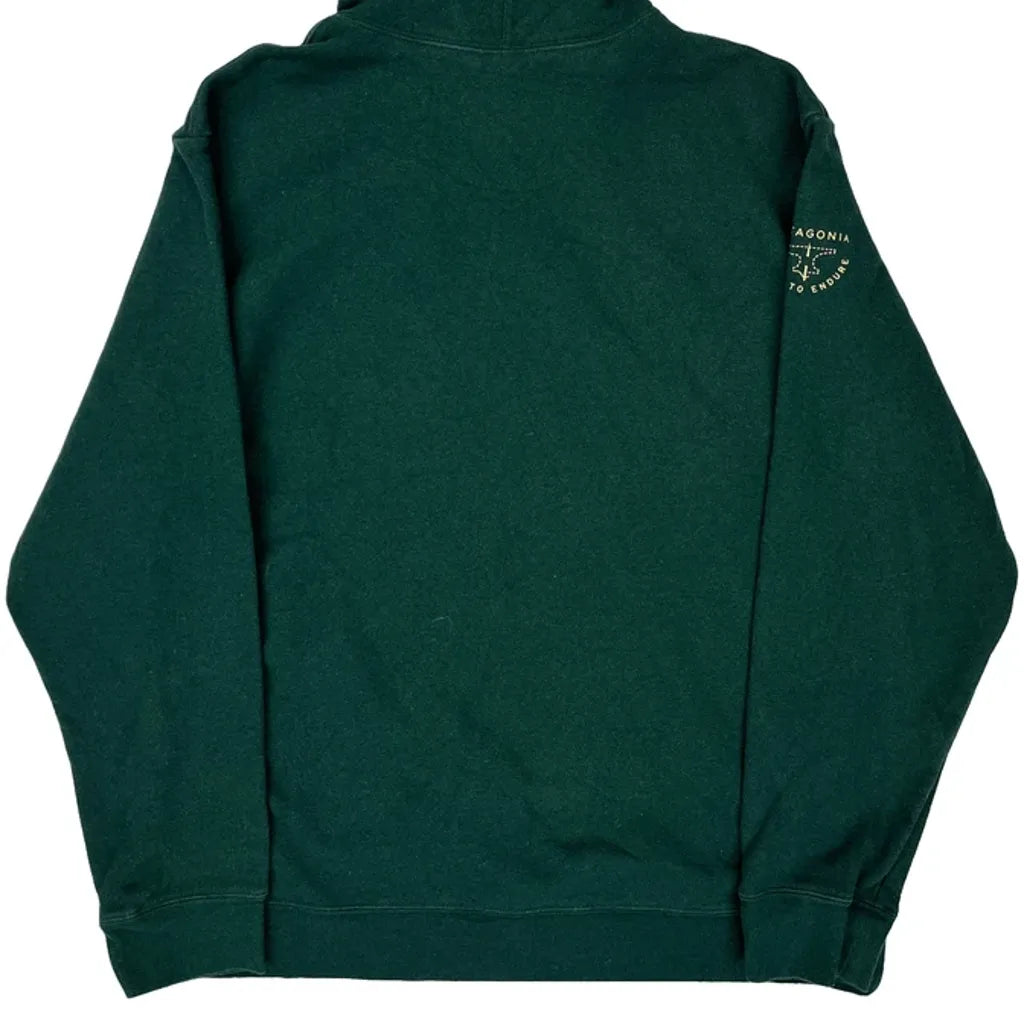 Dark Green Patagonia Hoodie With Front Pocket And Drawstring Hood.