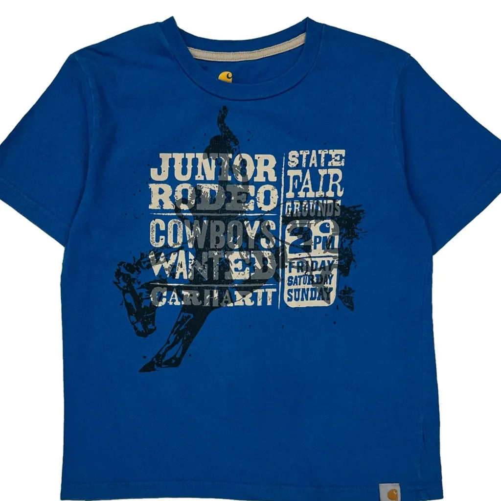 Junior Rodeo Carhartt Graphic T-Shirt - Small Blue Cotton