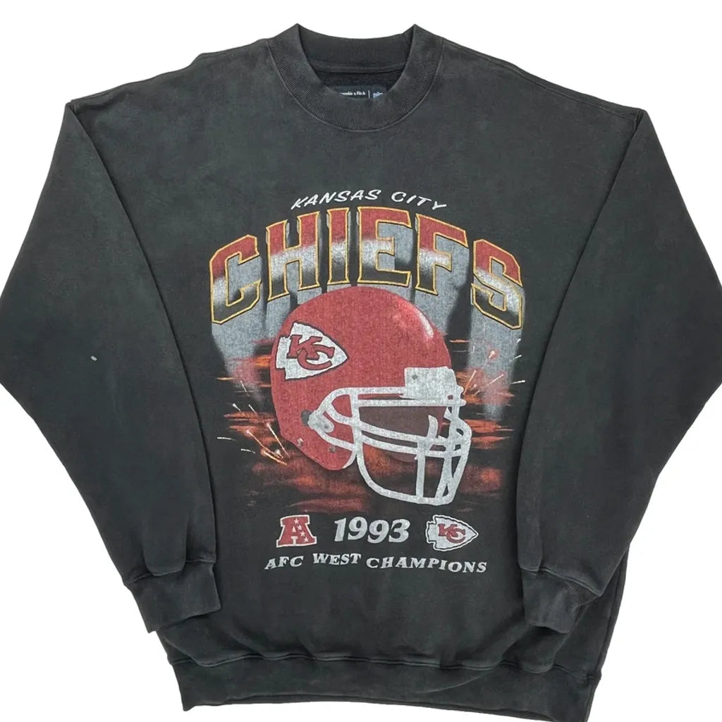 Kansas City Chiefs Abercrombie & Fitch Graphic Sweatshirt - Large Black Cotton