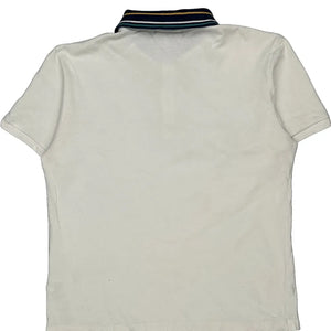White Polo Shirt With Navy And Yellow Striped Collar