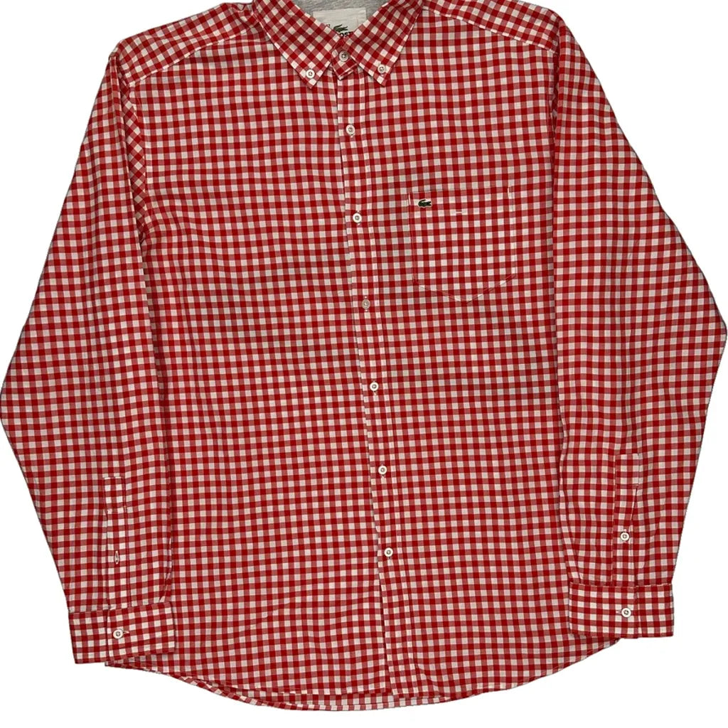 Lacoste Checked Shirt - Large Red Cotton