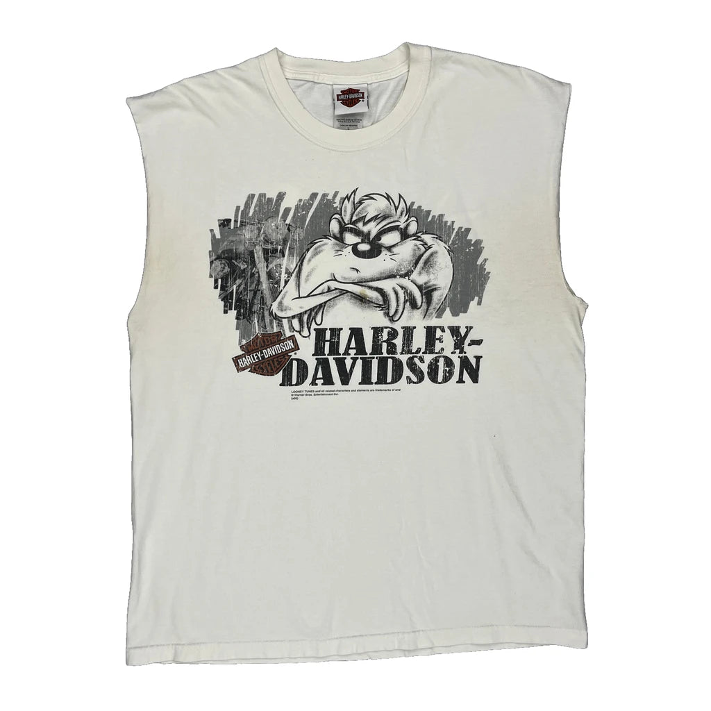 Sleeveless Harley Davidson T-Shirt With Cartoon Graphic