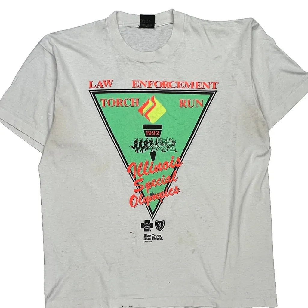 Law Enforcement Torch Run Screen Stars Single Stitch T-Shirt - XL White Cotton Blend