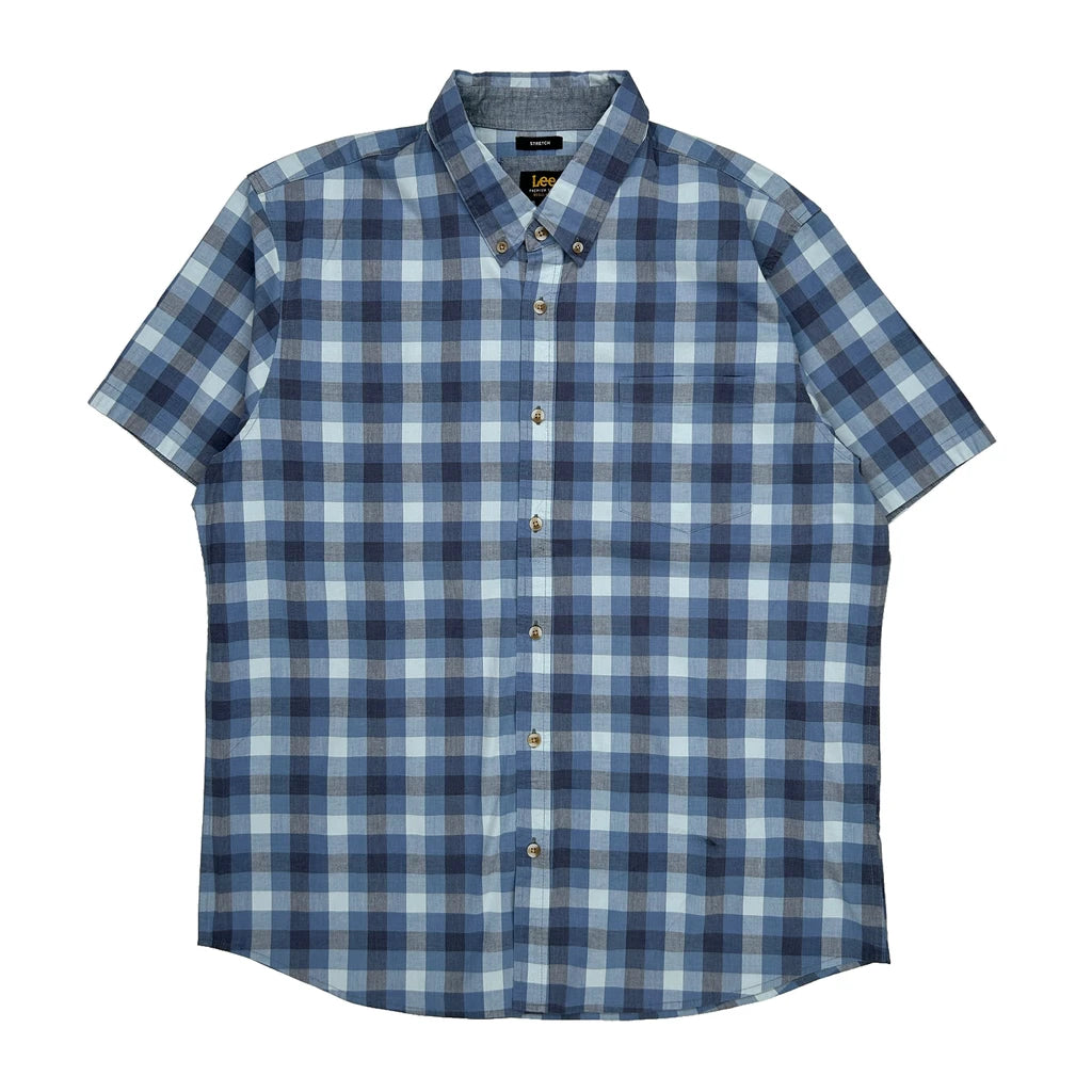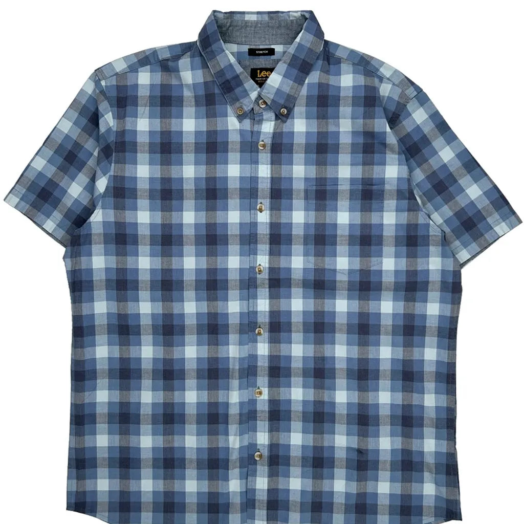 Lee Checked Short Sleeve Shirt - XL Blue Cotton