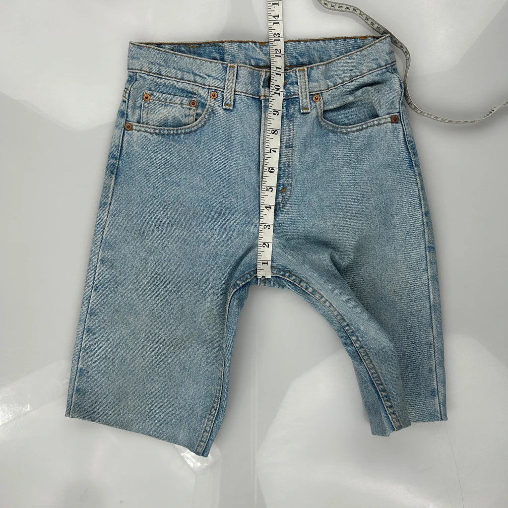 Levis Denim Shorts, fit a 29″ Waist and 11″ inseam.