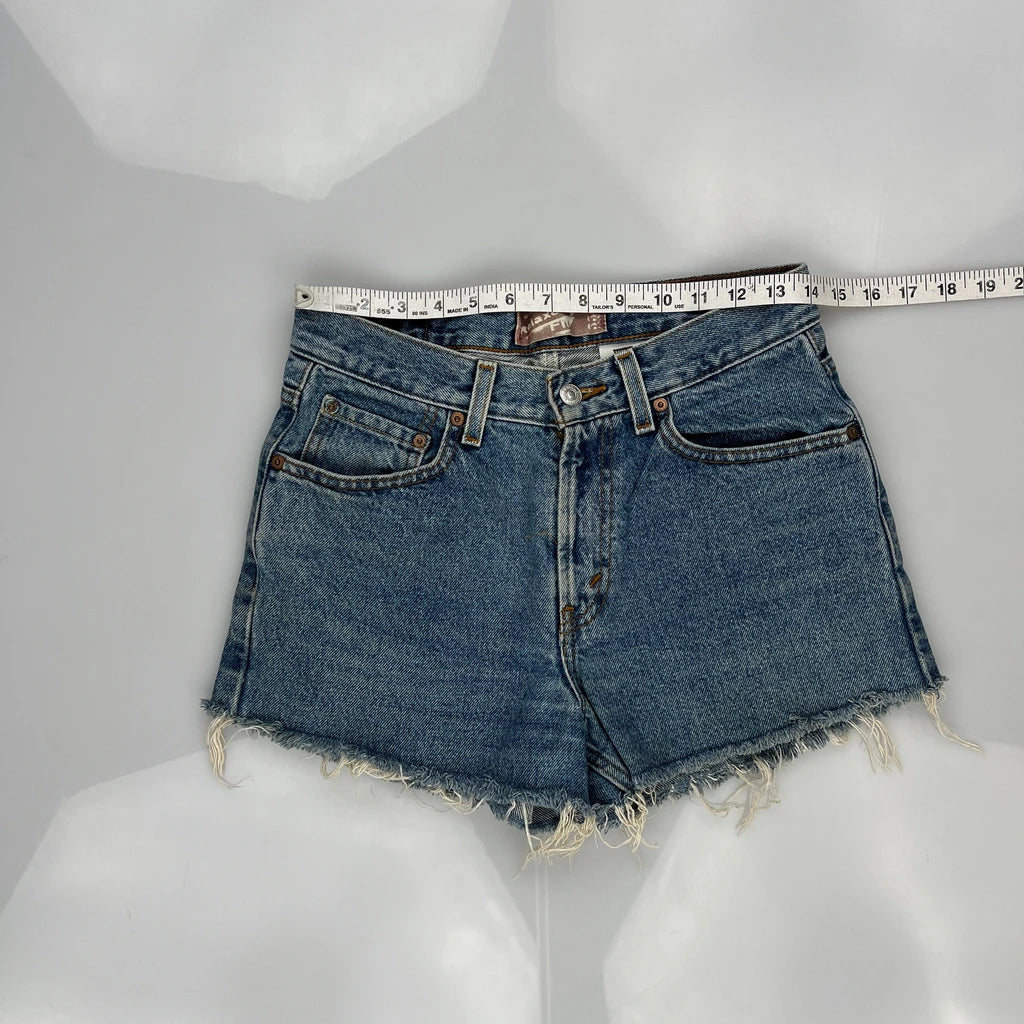 Levis Denim Shorts, fit a UK size 8 with a 28″ Waist.