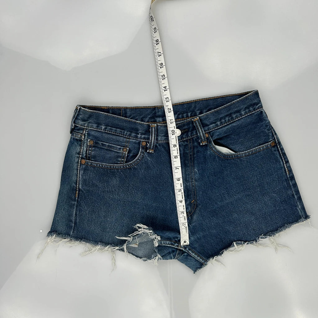 Levis Denim Shorts - 32W UK 12 Dark Wash Cotton