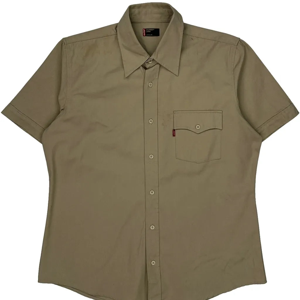 Levis Short Sleeve Shirt - Large Khaki Cotton