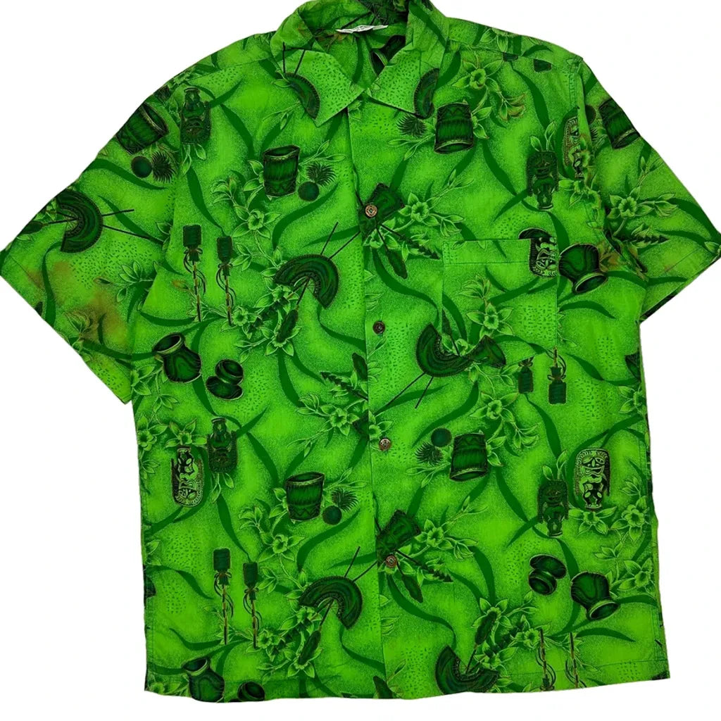 Made In Hawaii Tropical Unbranded Floral Hawaiian Shirt - Medium Green Cotton