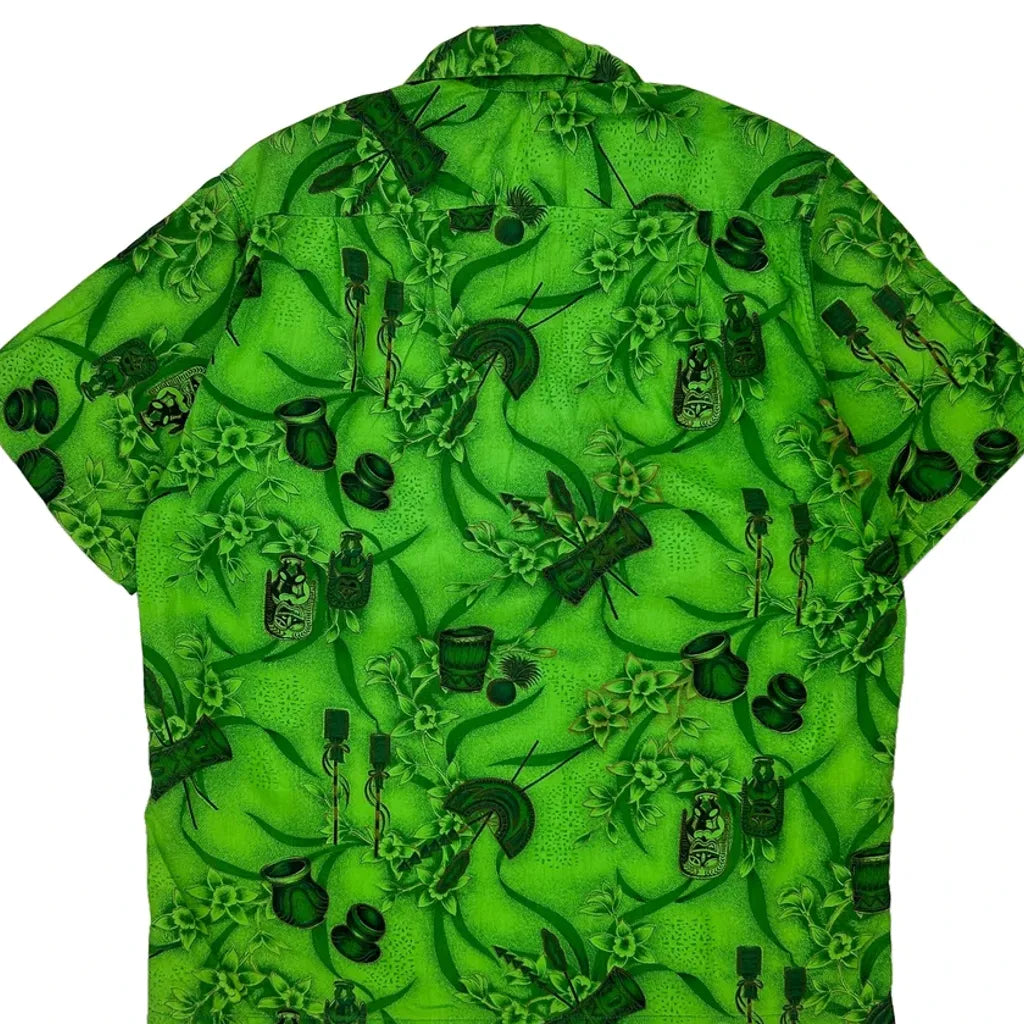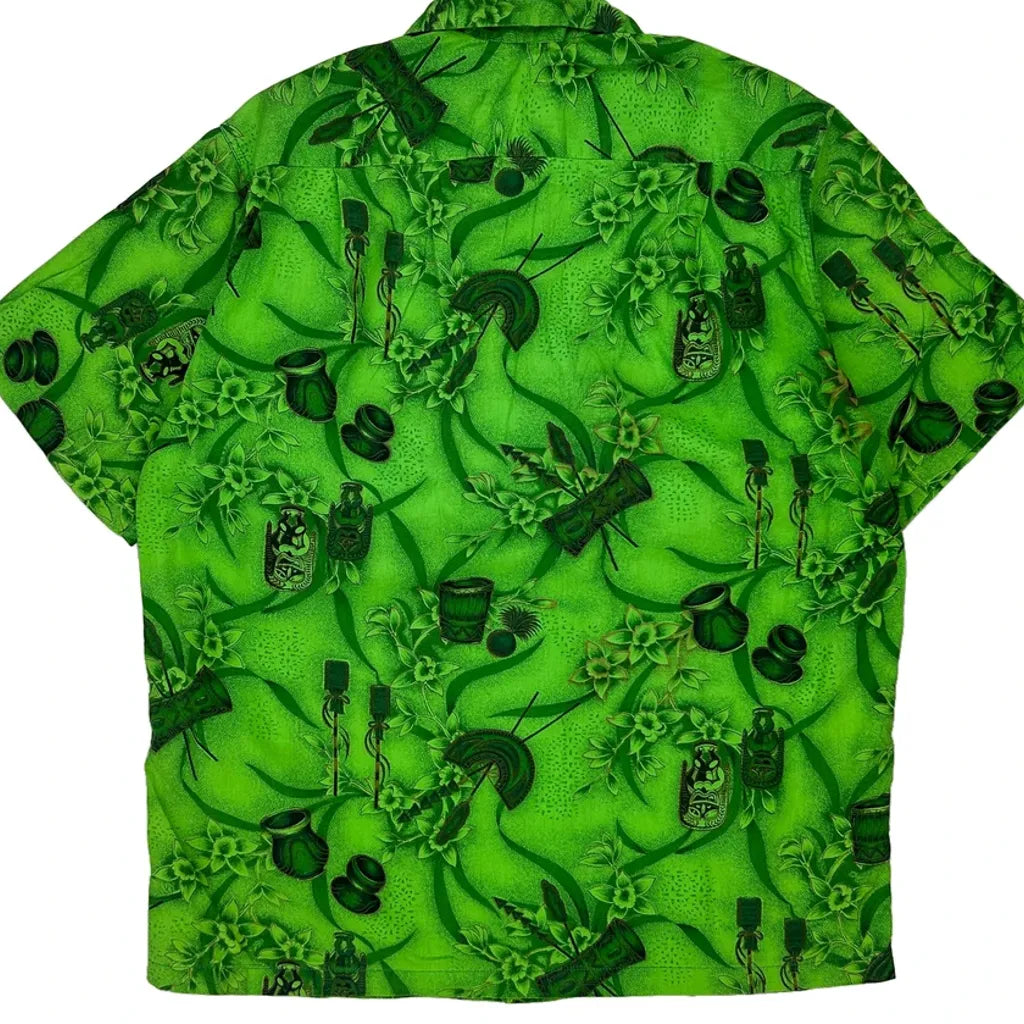 Bright Green Hawaiian Shirt With Tropical Print