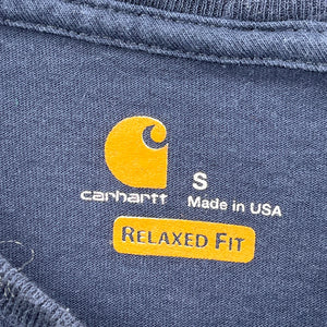 Made In Usa Carhartt Spellout Long Sleeve T-Shirt - Small Navy Cotton