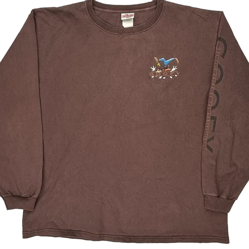 Made In USA Goofy Disney Long Sleeve T-Shirt - XL Brown Cotton