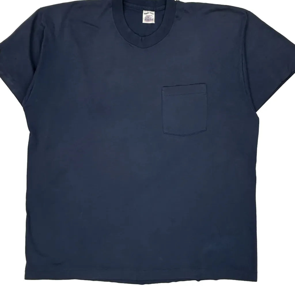 Made In USA Single Stitch Bvd T-Shirt - 2XL Navy Cotton Blend