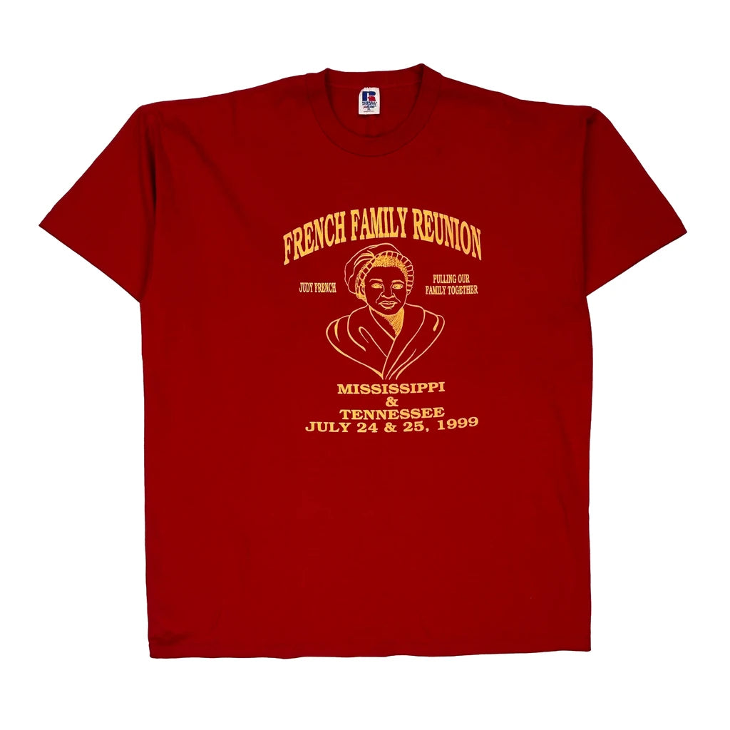 Made In USA Single Stitch Family Reunion Russell Athletic Graphic T-Shirt - XL Red Cotton Blend