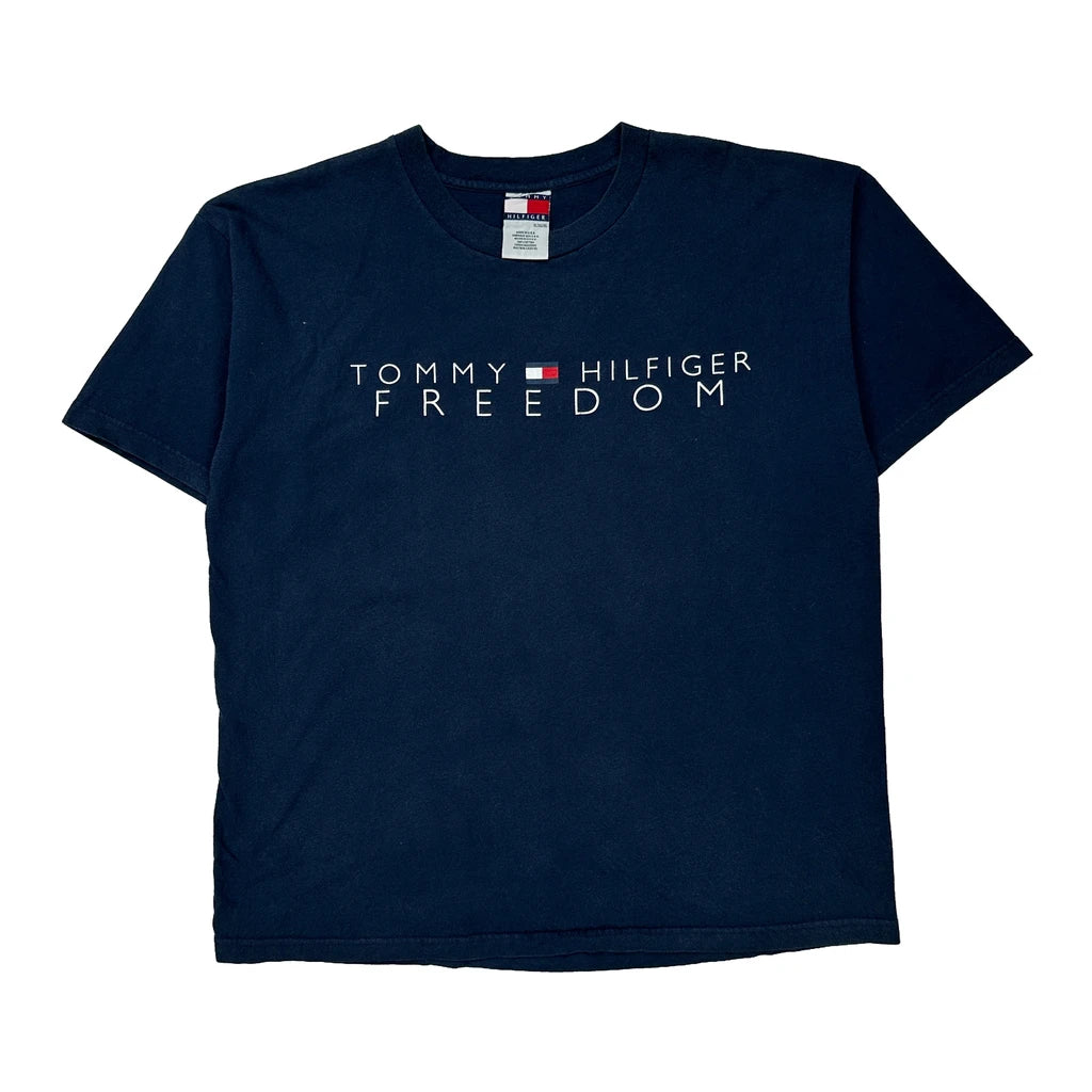 Made In USA Tommy Hilfiger Spellout T-Shirt - XL Navy Cotton