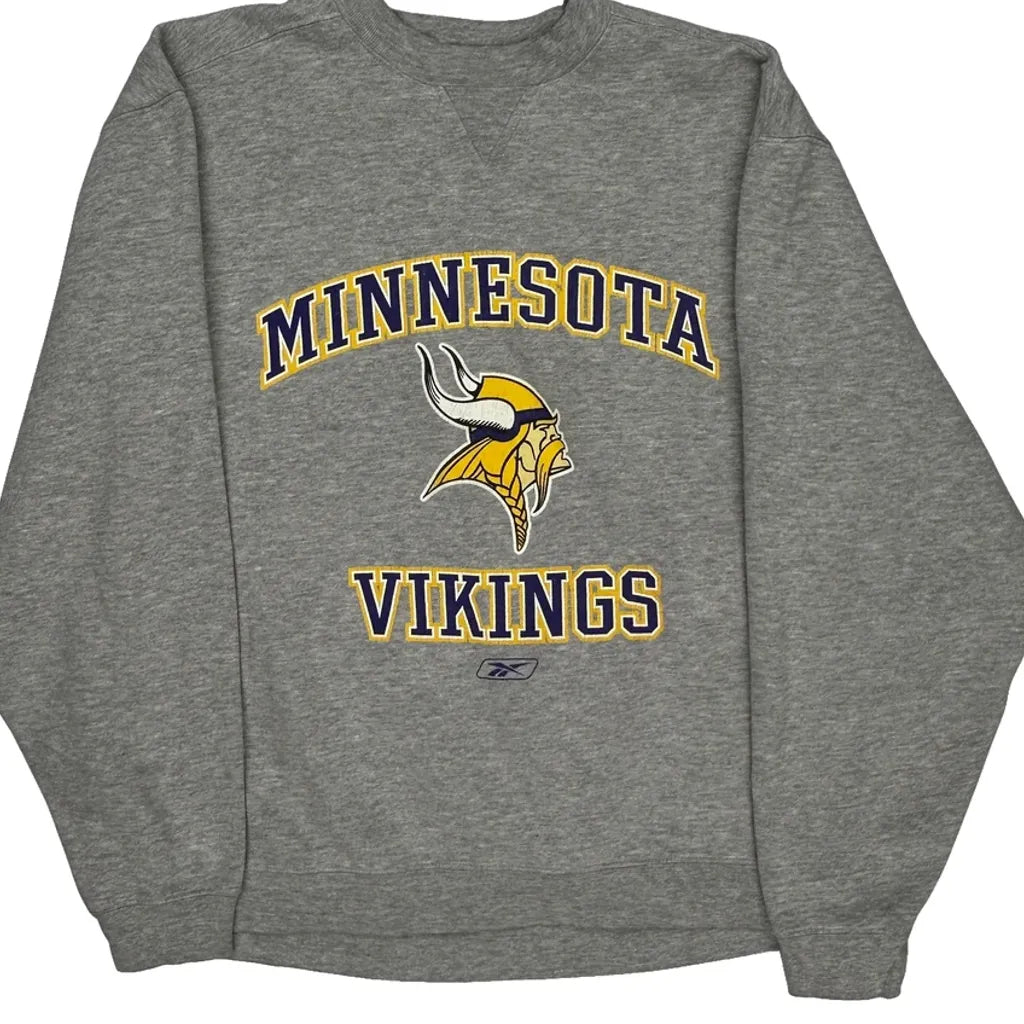 Minnesota Vikings Reebok Nfl Sweatshirt - Large Grey Cotton Blend