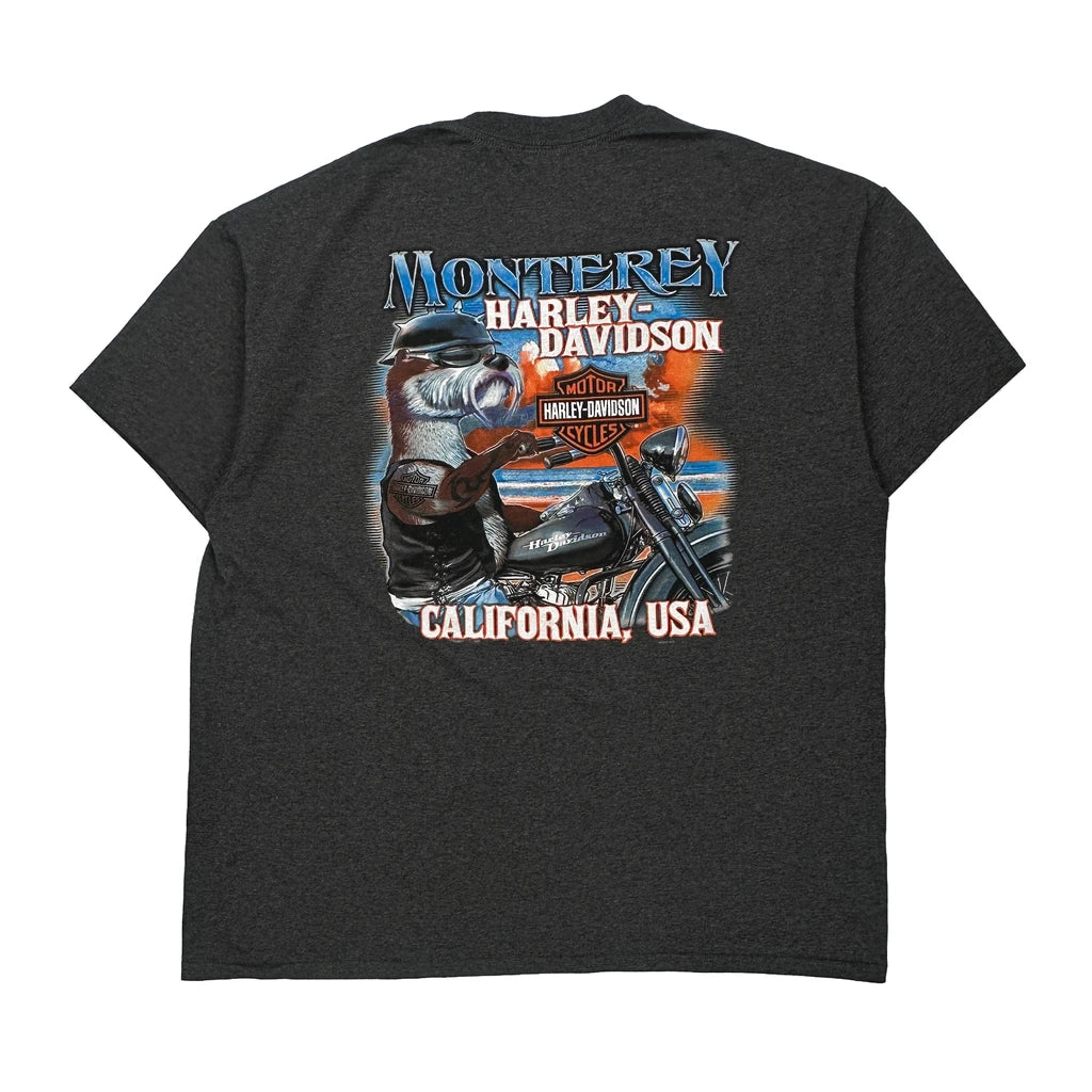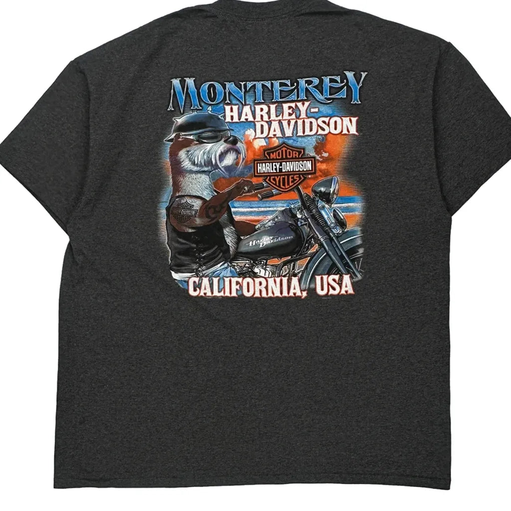 Monterey California Harley Davidson Graphic T-Shirt - XL Grey Cotton