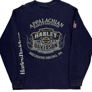 Motorcycles Harley Davidson Graphic Long Sleeve T-Shirt - Large Navy Cotton
