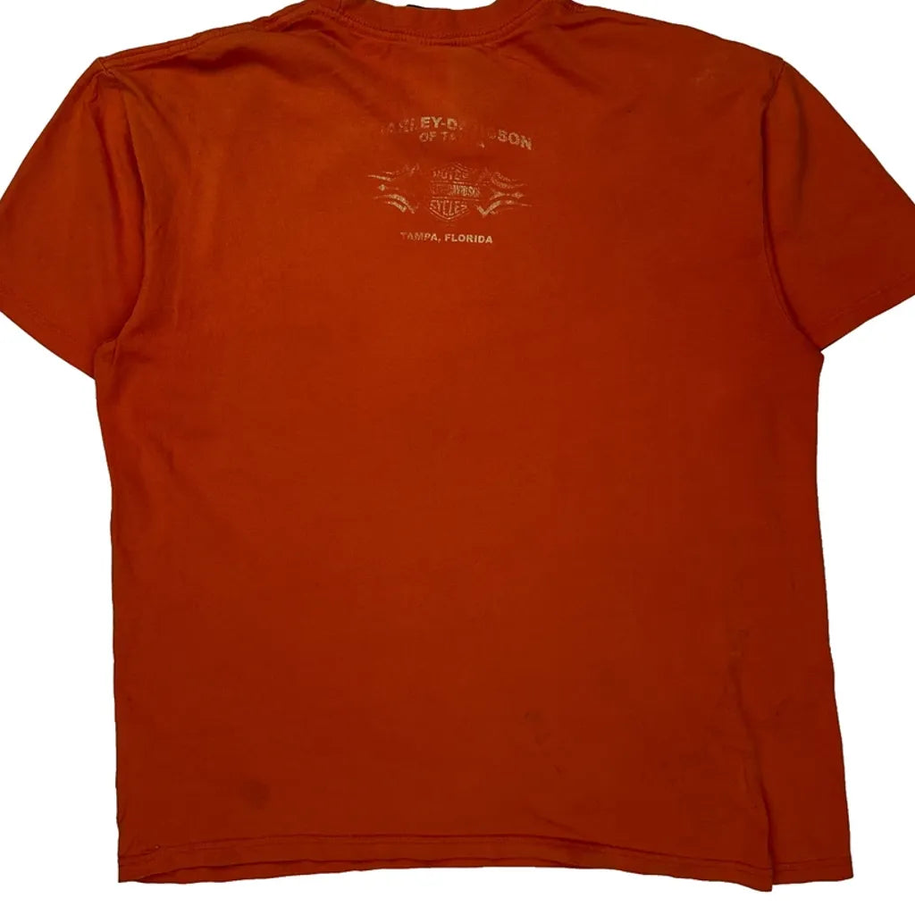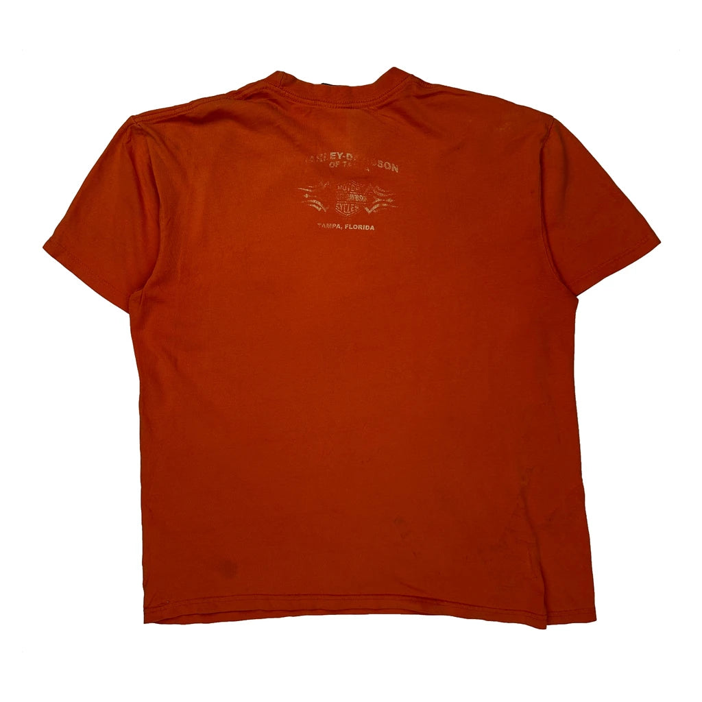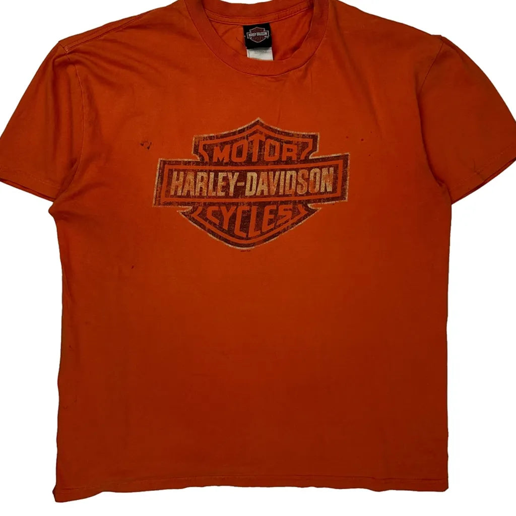 Motorcycles Harley Davidson Graphic T-Shirt - Medium Orange Cotton