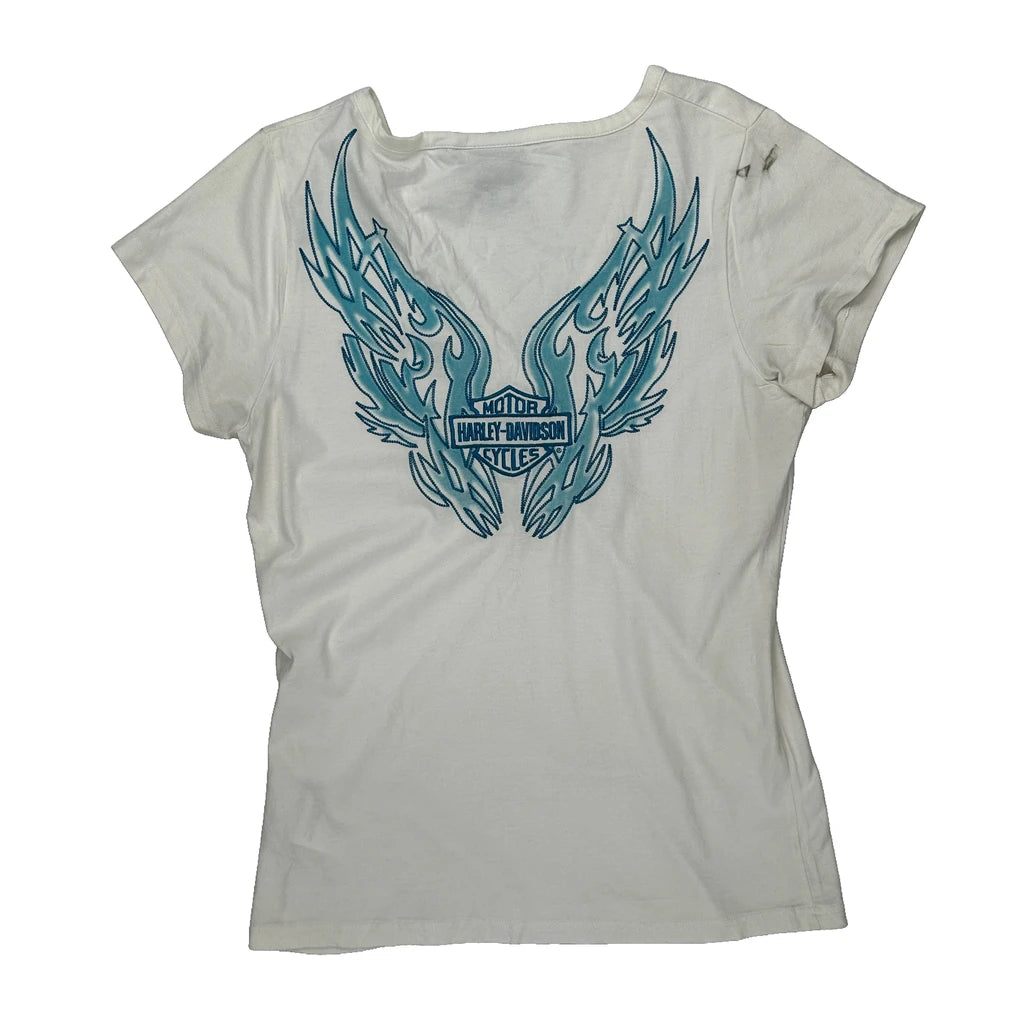 Motorcycles Harley Davidson Graphic T-Shirt - Large White Cotton
