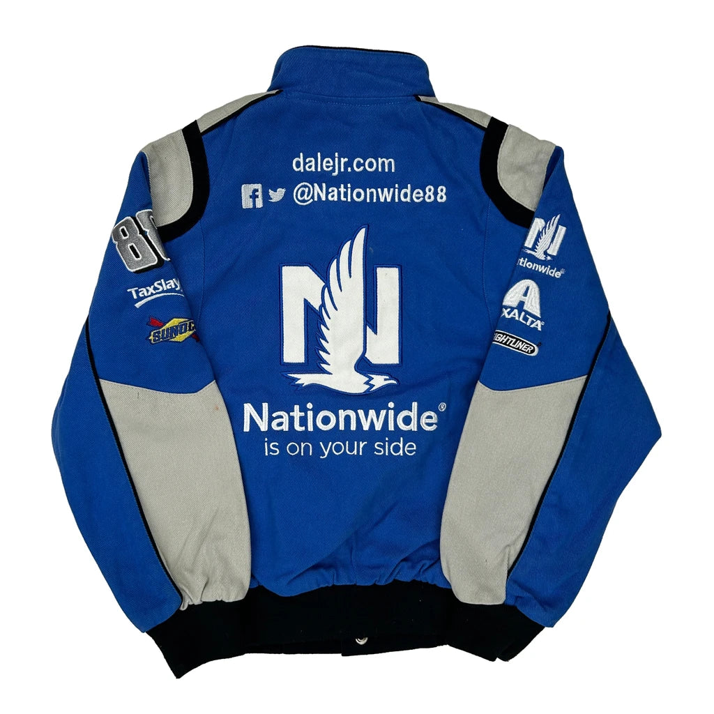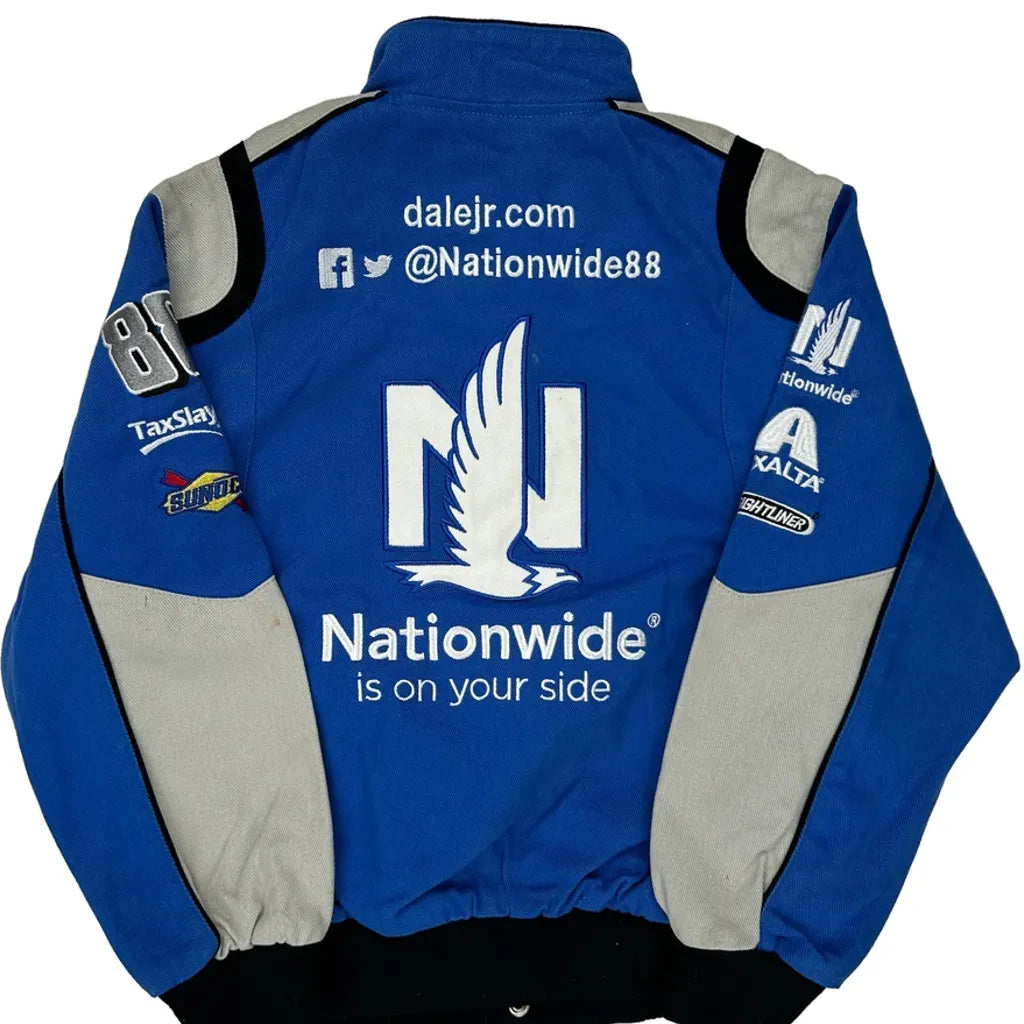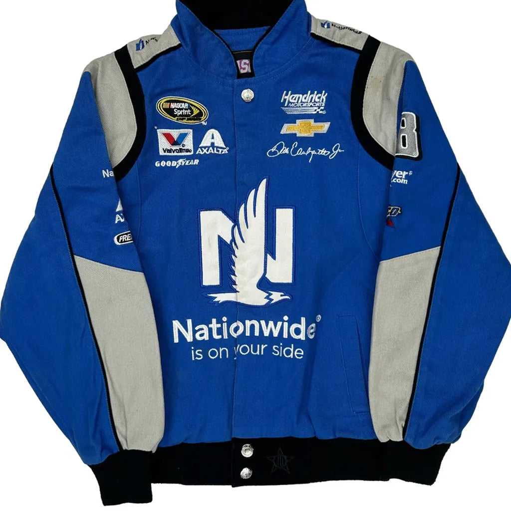 Blue Nascar Bomber Jacket With Nationwide Branding.
