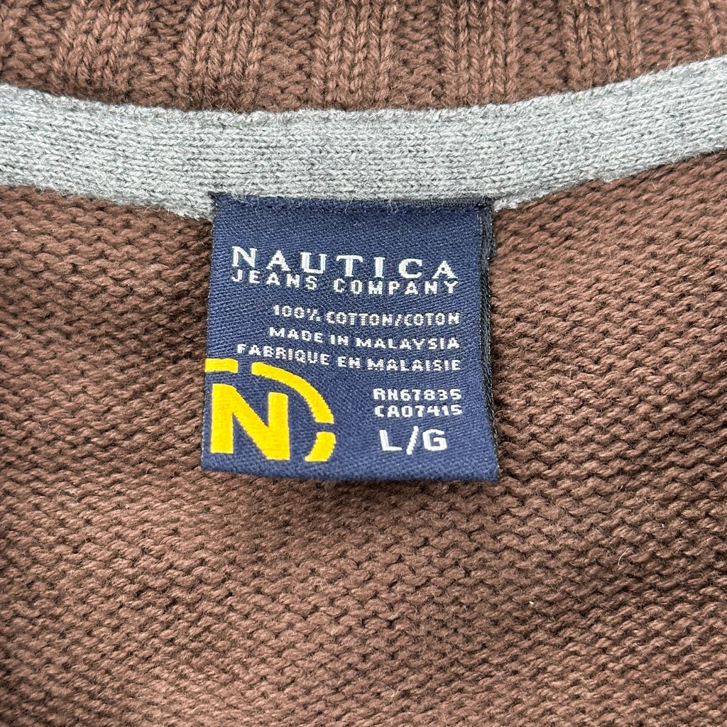 Nautica Long Sleeve T-Shirt - Large Brown Cotton