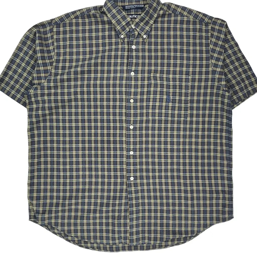 Nautica Checked Short Sleeve Shirt - XL Beige Cotton Blend