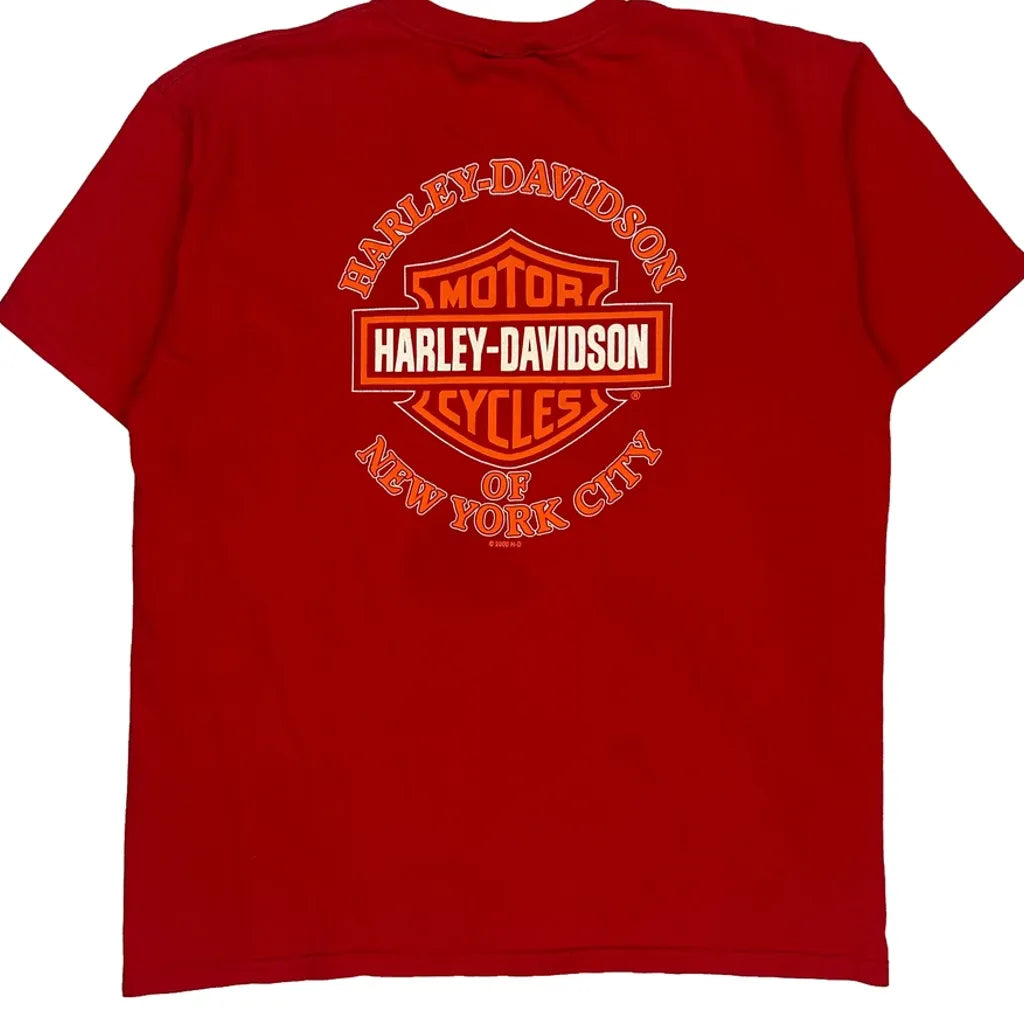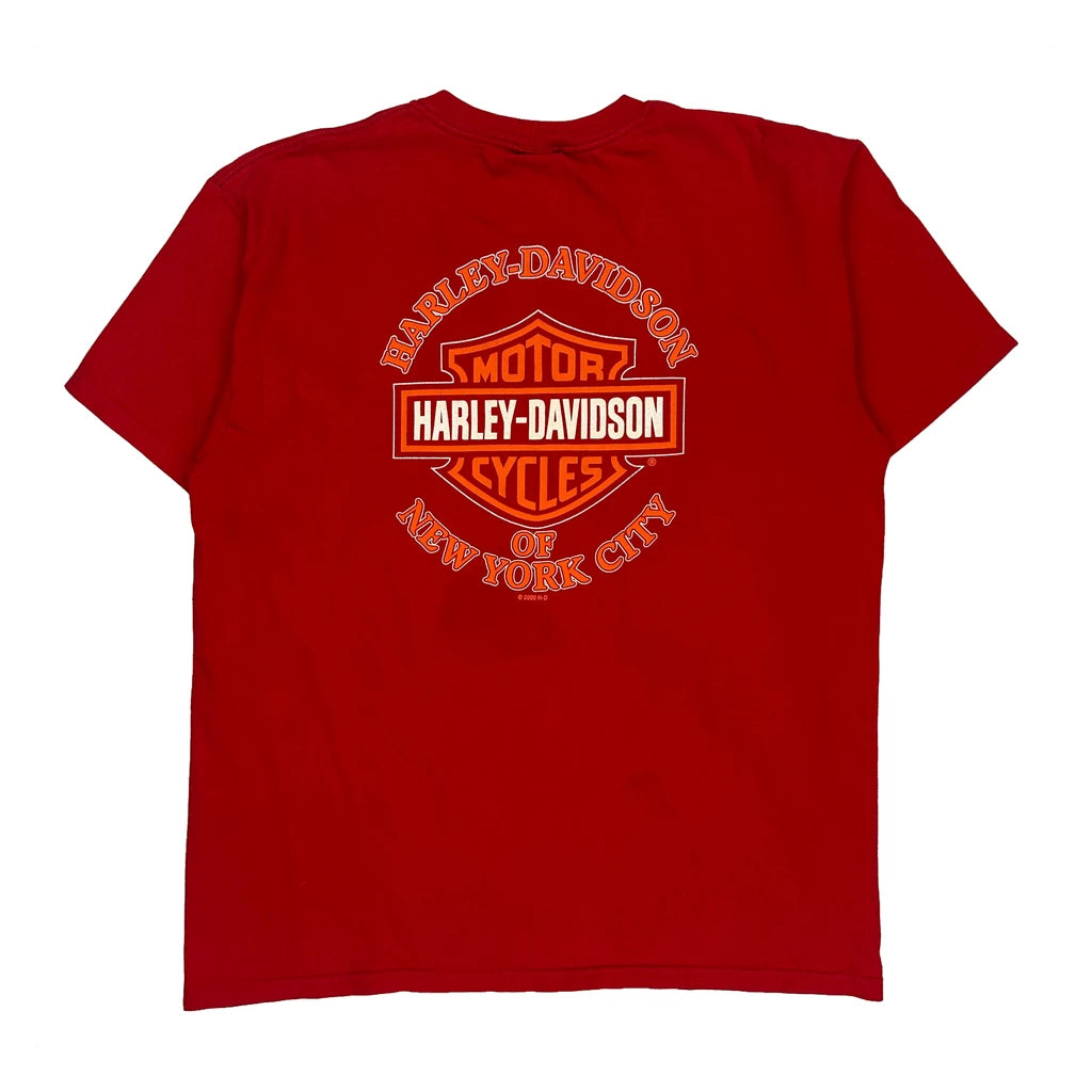 New York City Harley Davidson Graphic T-Shirt - XL Red Cotton