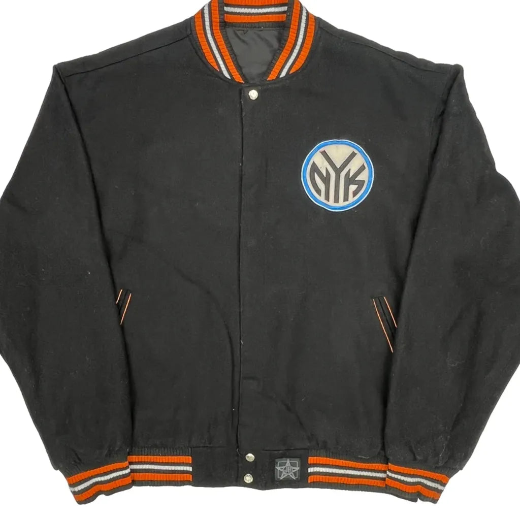New York Knicks Nba Graphic Varsity Jacket - 4XL Black Cotton Blend