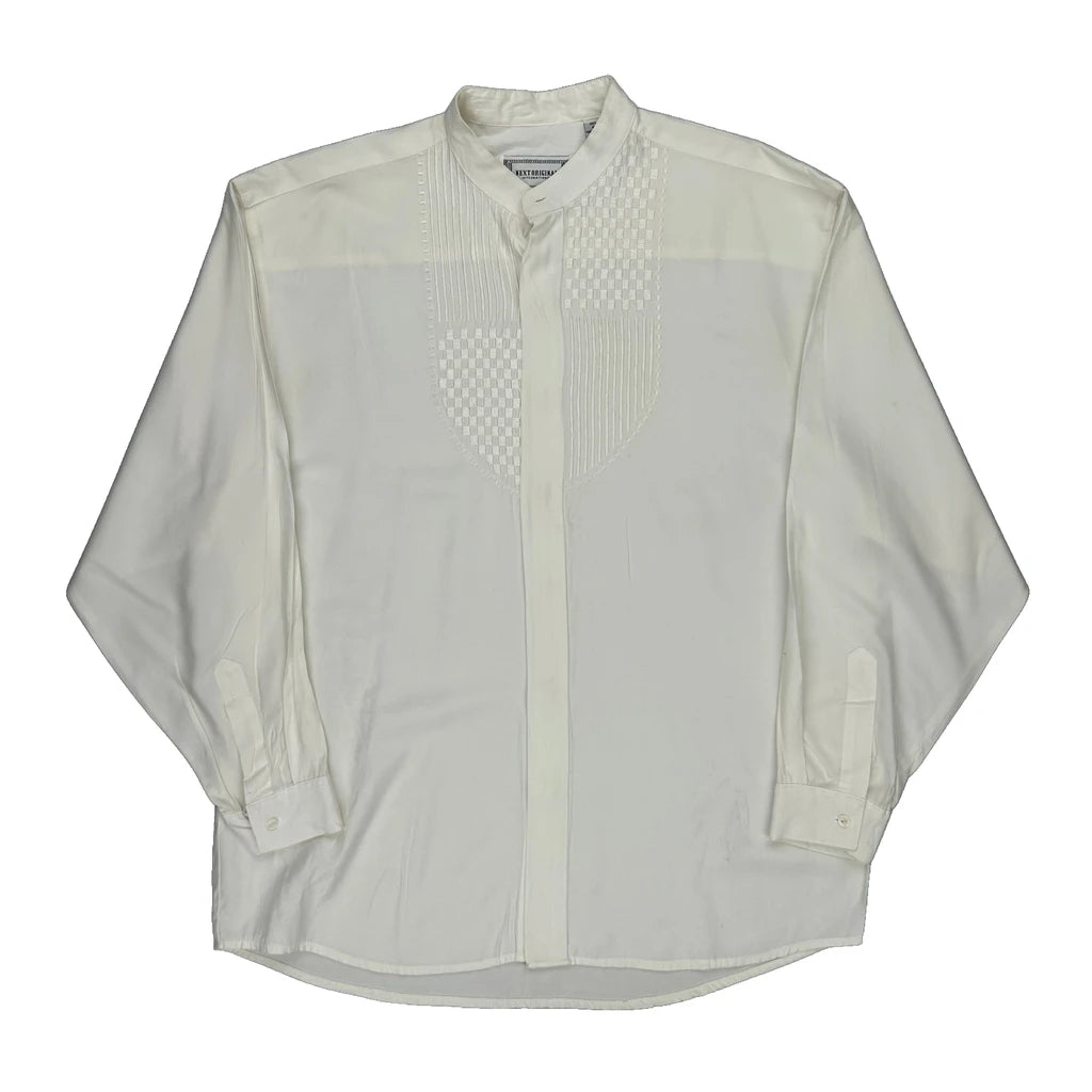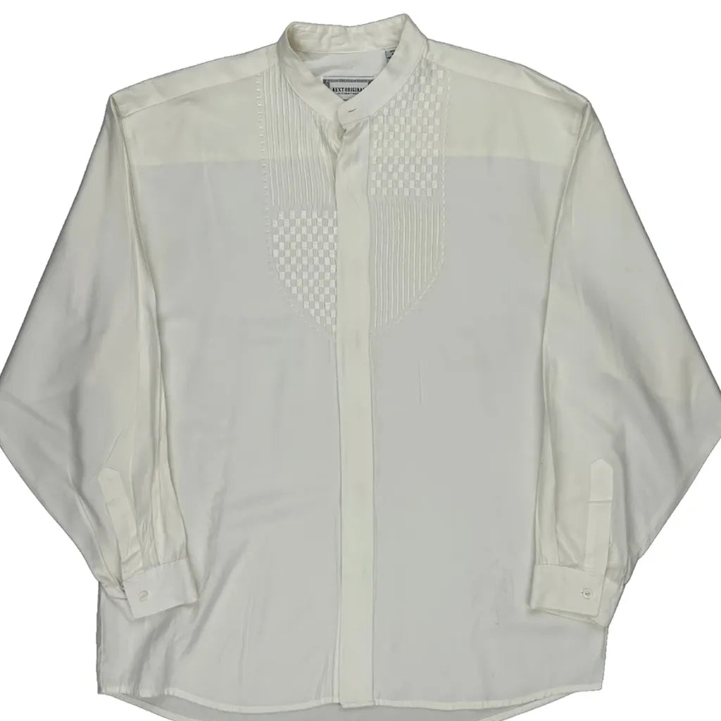 Next Collarless Shirt - Large White Viscose