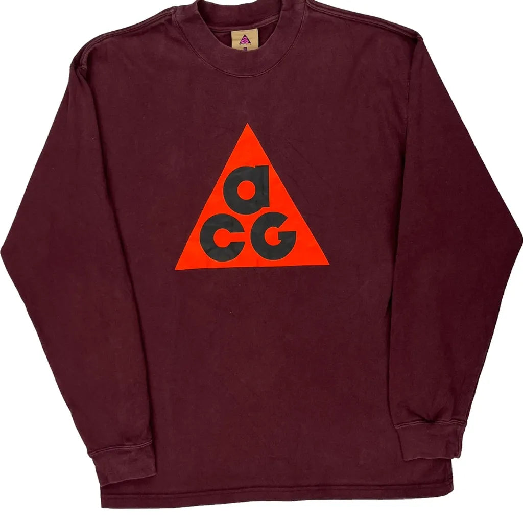 Nike Acg Long Sleeve T-Shirt - Medium Burgundy Cotton