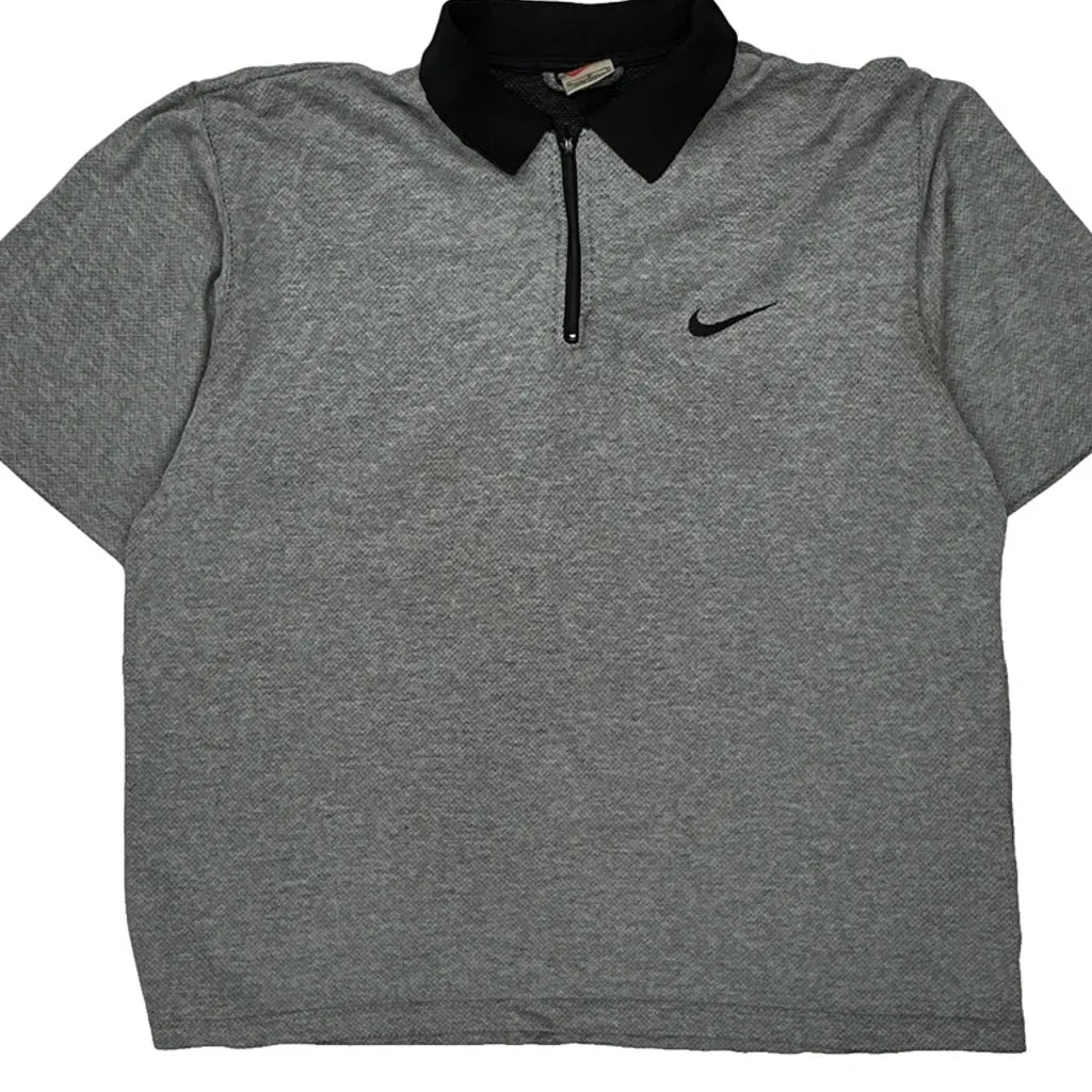 Grey Nike Polo Shirt With Black Collar, No Visible Marks Or Faults.