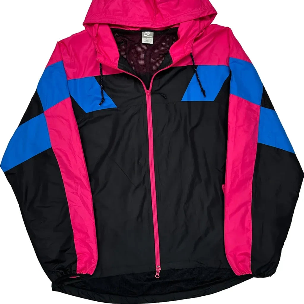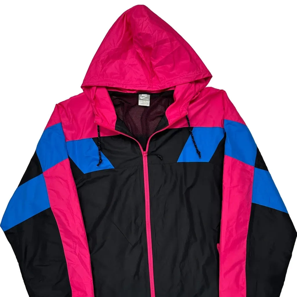 Nike Windbreaker With Hood, Black With Pink And Blue Accents