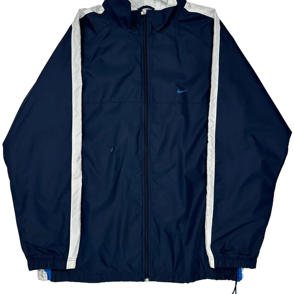Navy Windbreaker With White Accents, Minor Wear