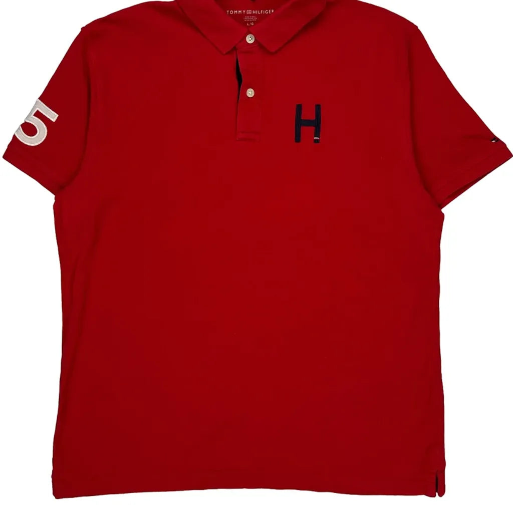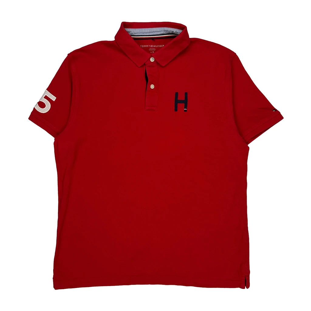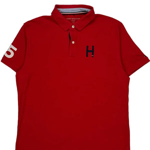 Number 85 On Sleeve Tommy Hilfiger Polo Shirt - Large Red Cotton