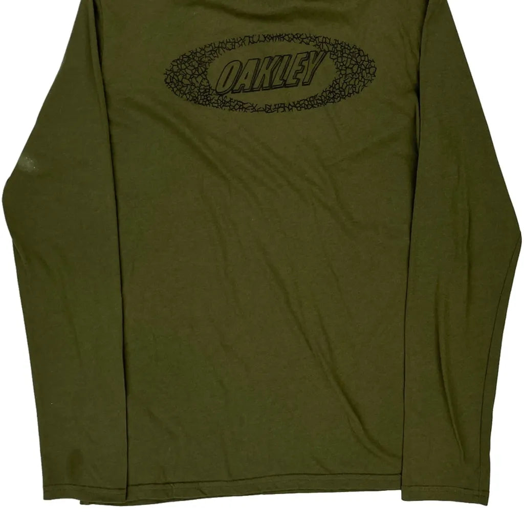 Oakley Spellout Long Sleeve T-Shirt - Large Khaki Cotton