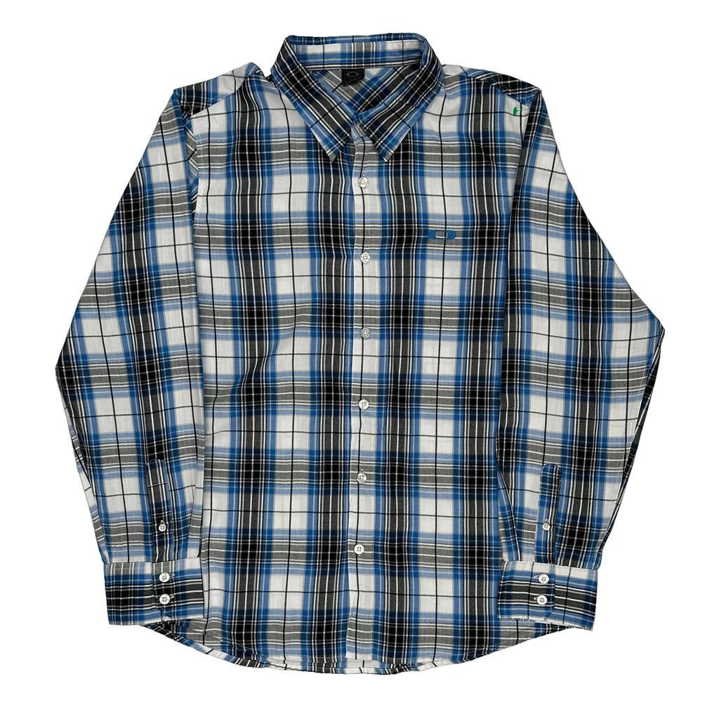 Oakley Checked Shirt - Large Blue Cotton Blend