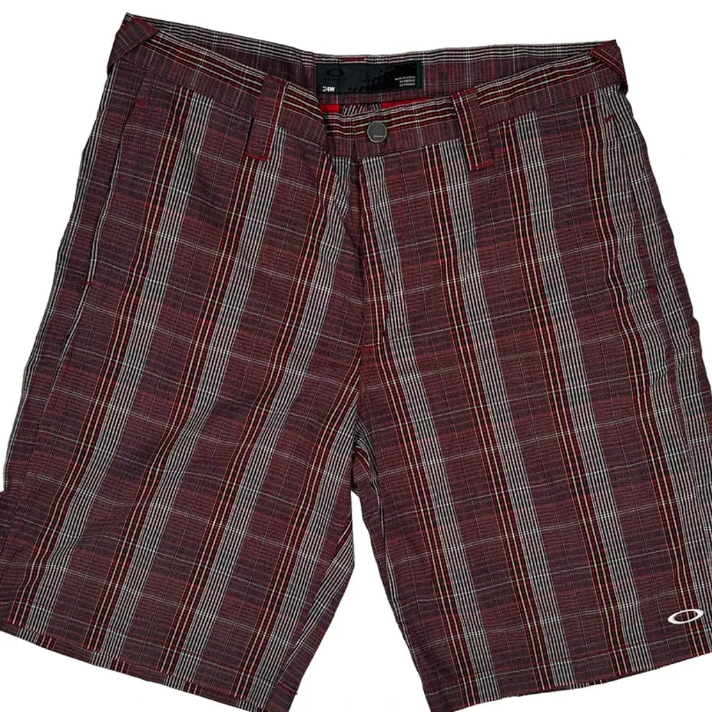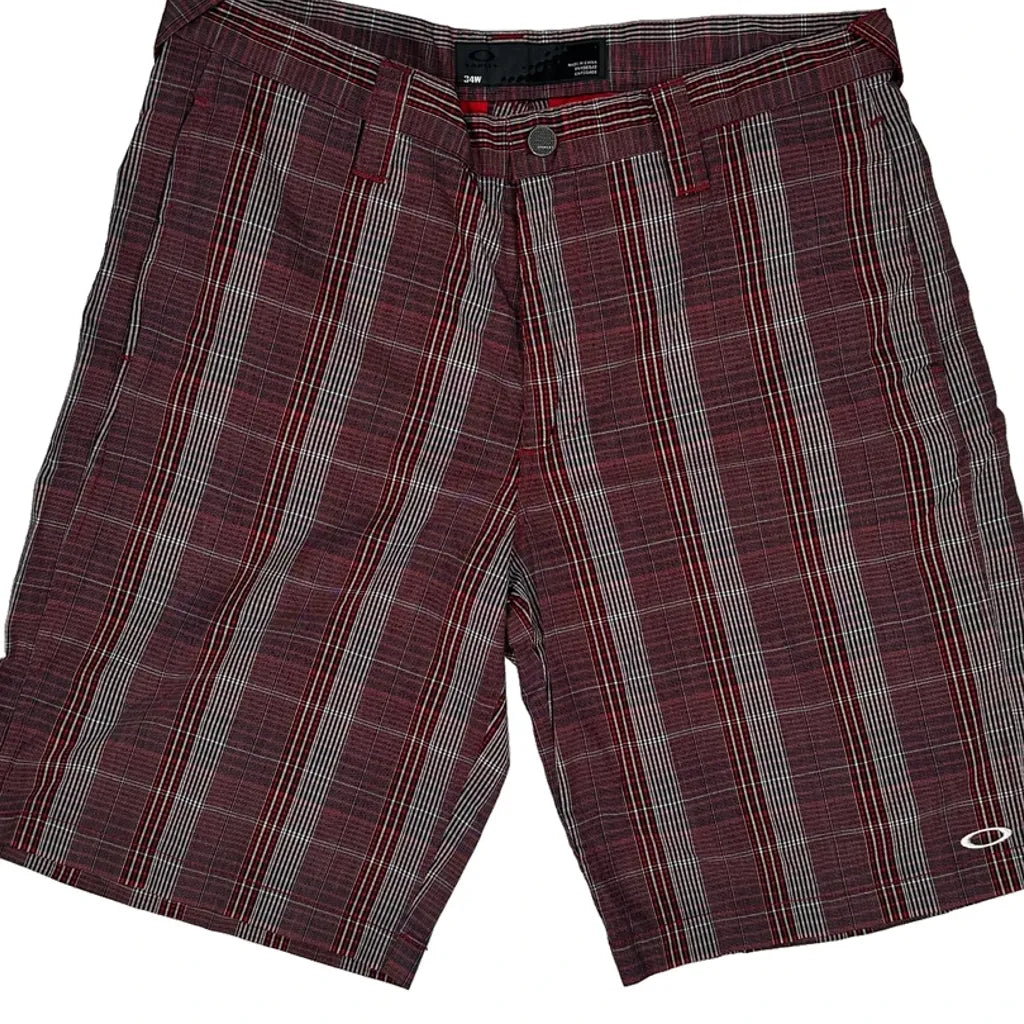 Red And Grey Checked Shorts With Oakley Logo