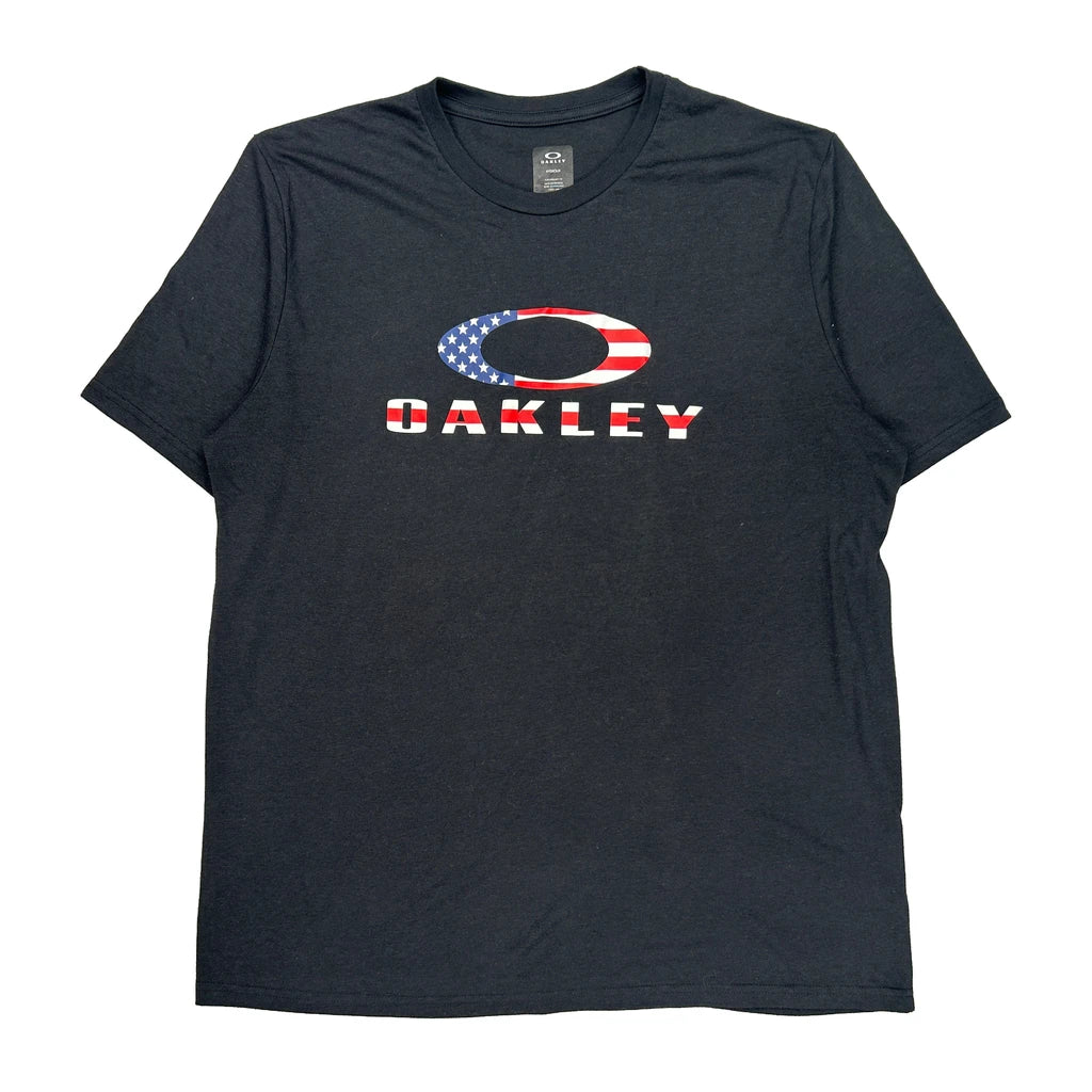 Black Oakley T-Shirt With American Flag Logo