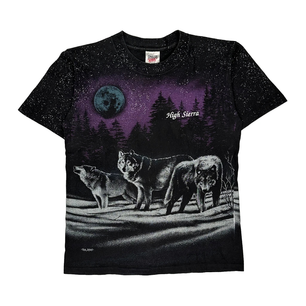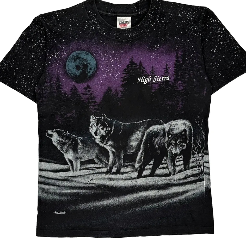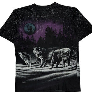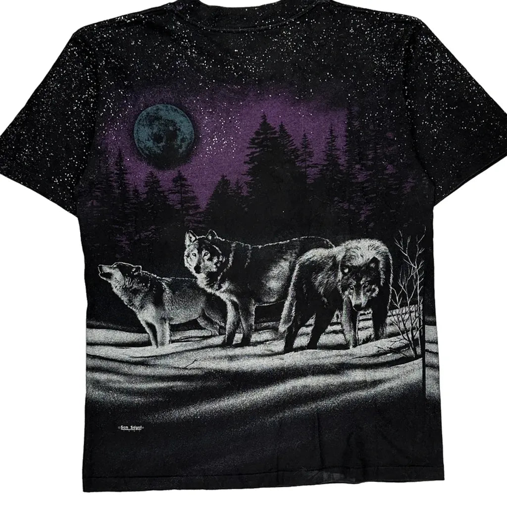 Features A Graphic Of Wolves Under A Moonlit Sky