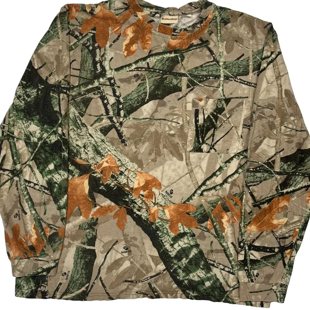 Outfitters Ridge Camo Long Sleeve T-Shirt - XL Green Cotton