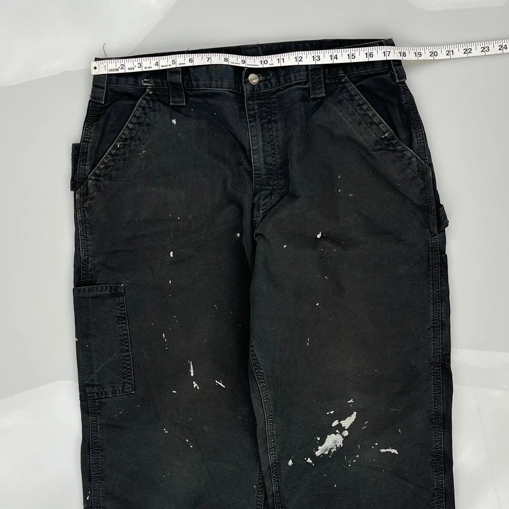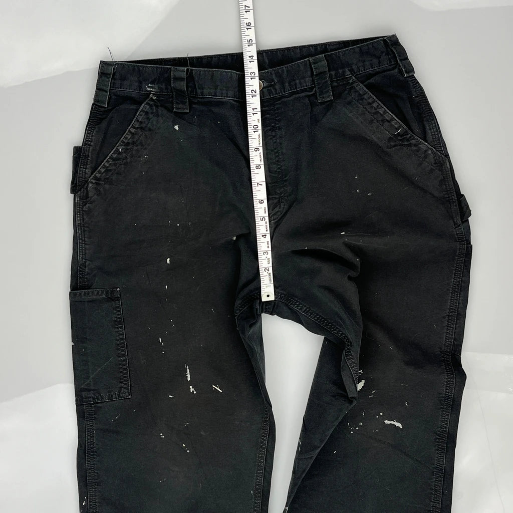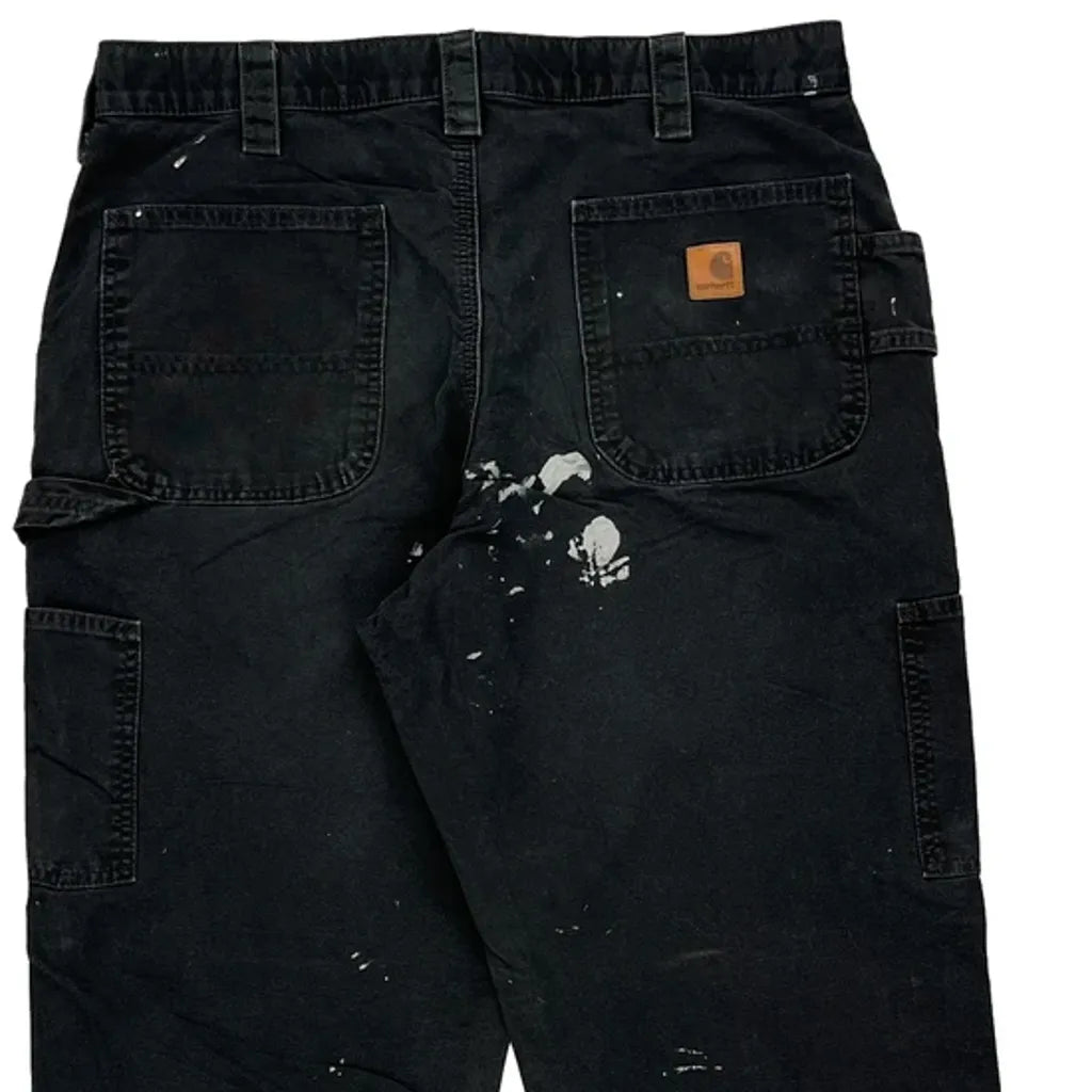 Paint Splattered Carhartt Carpenter Trousers - 34W 32L Black Cotton
