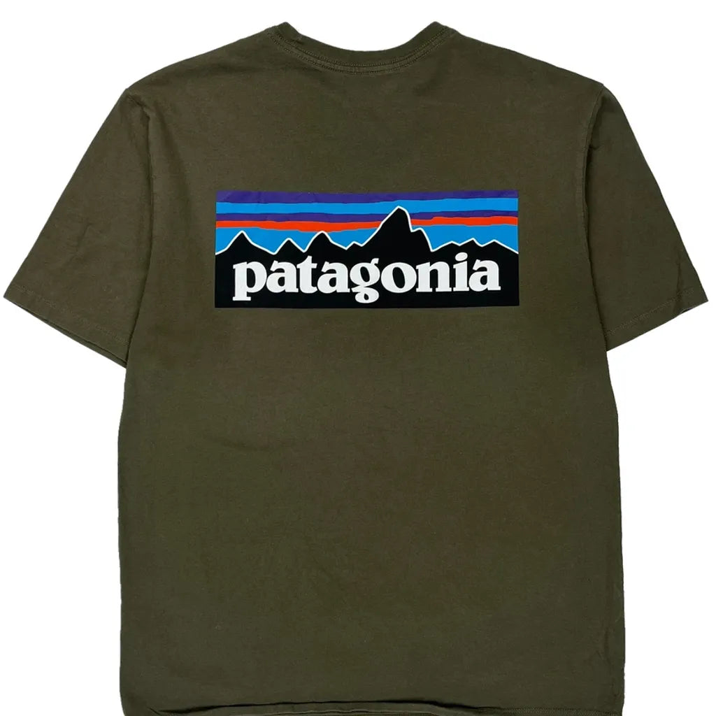 Olive Green Patagonia T-Shirt With Small Logo On Front And Large Logo On Back.