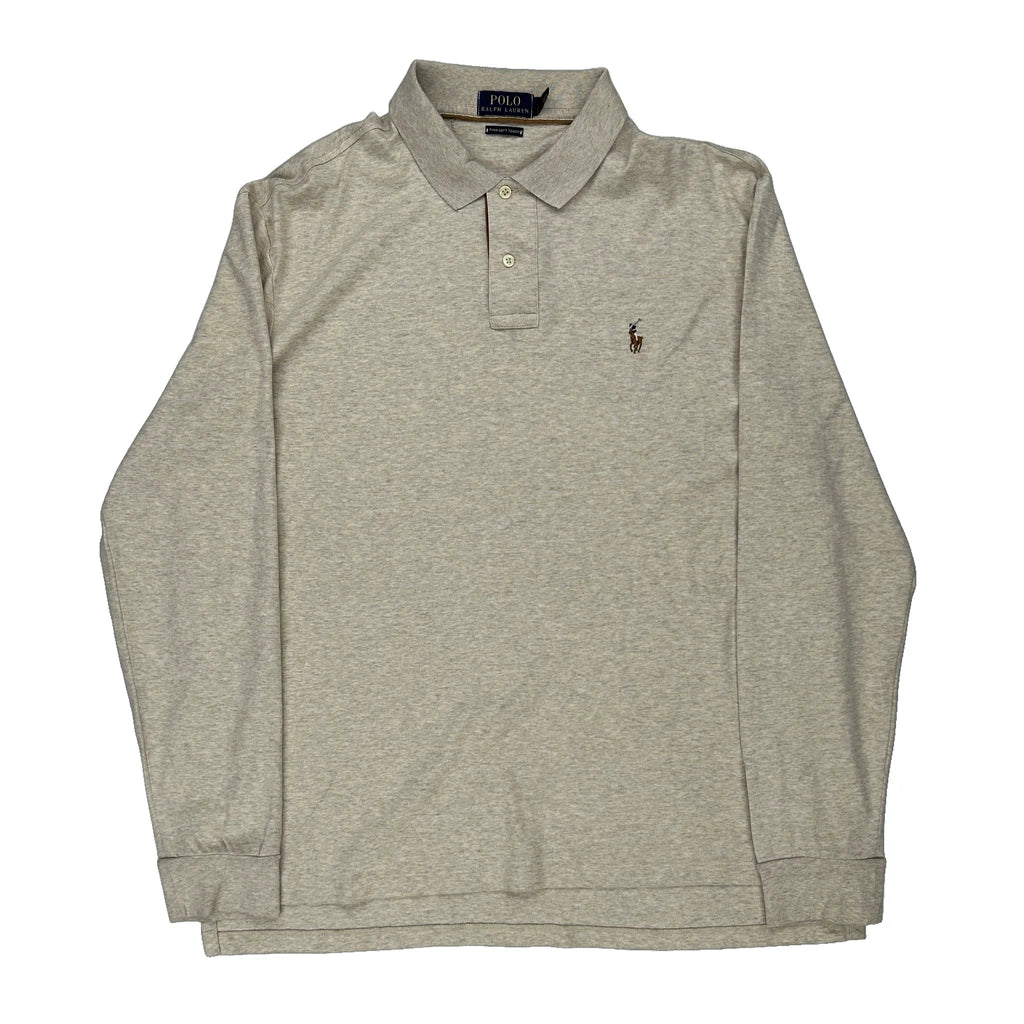 Pima Soft Touch Polo By Ralph Lauren Long Sleeve Polo Shirt - XL Beige Cotton