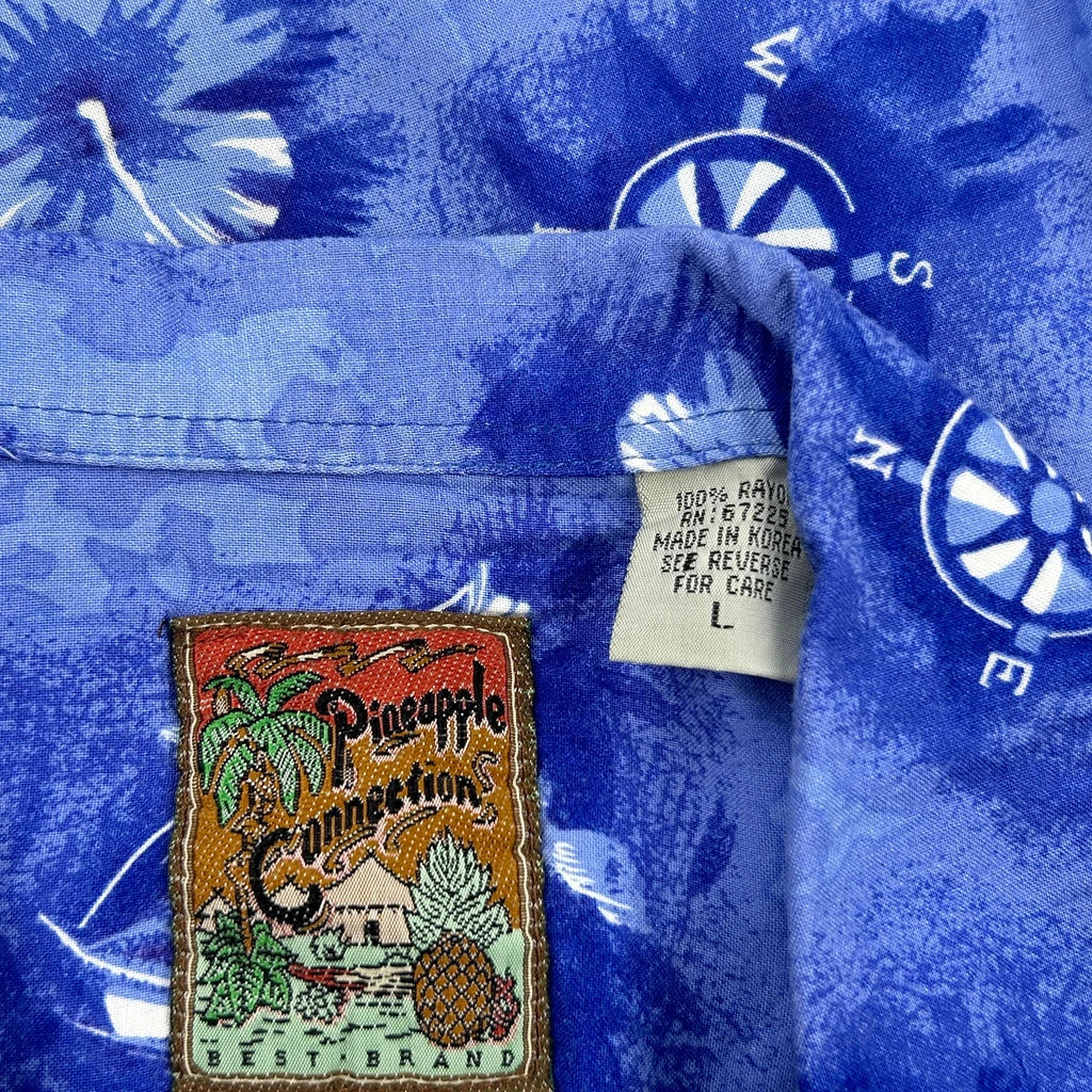 Pineapple Connection Floral Hawaiian Shirt - Large Blue Viscose