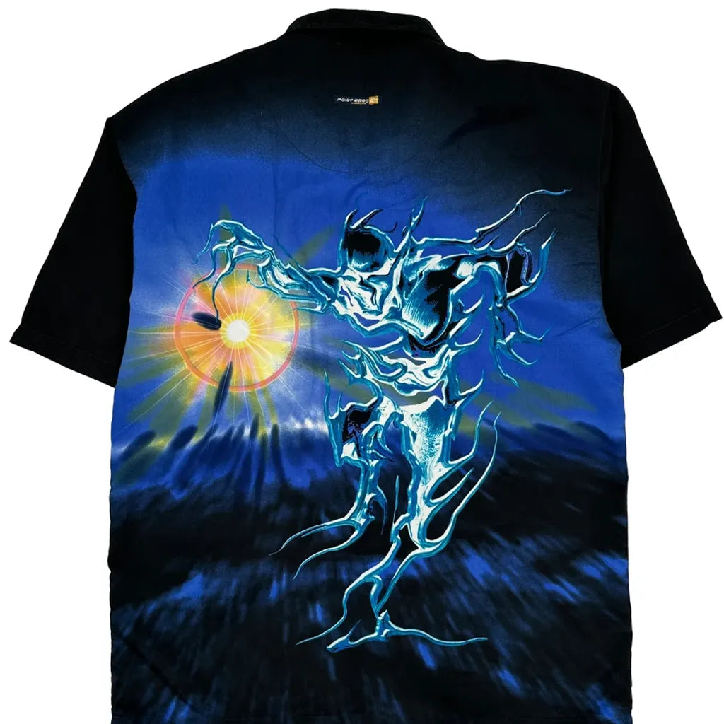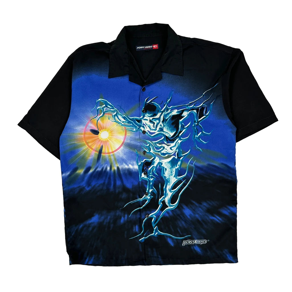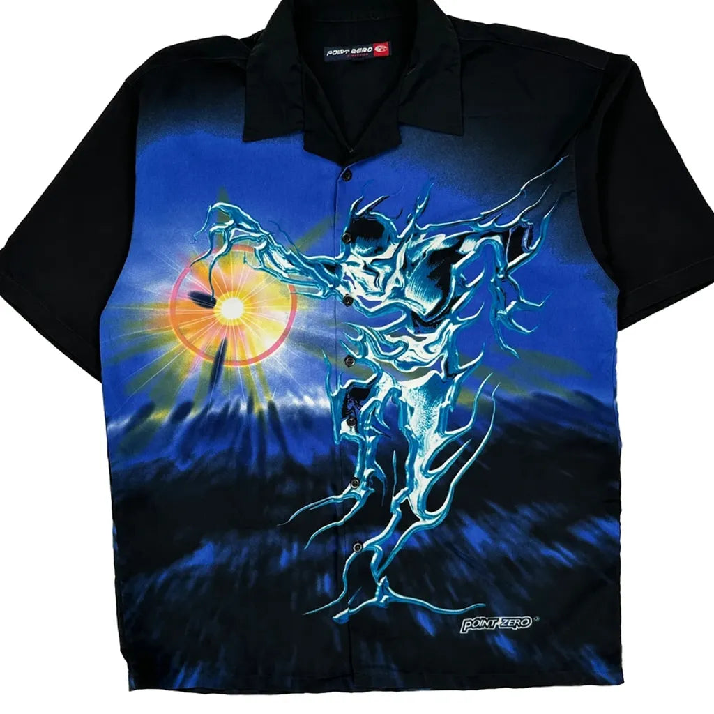 Point Zero Graphic Hawaiian Shirt - Large Black Polyester