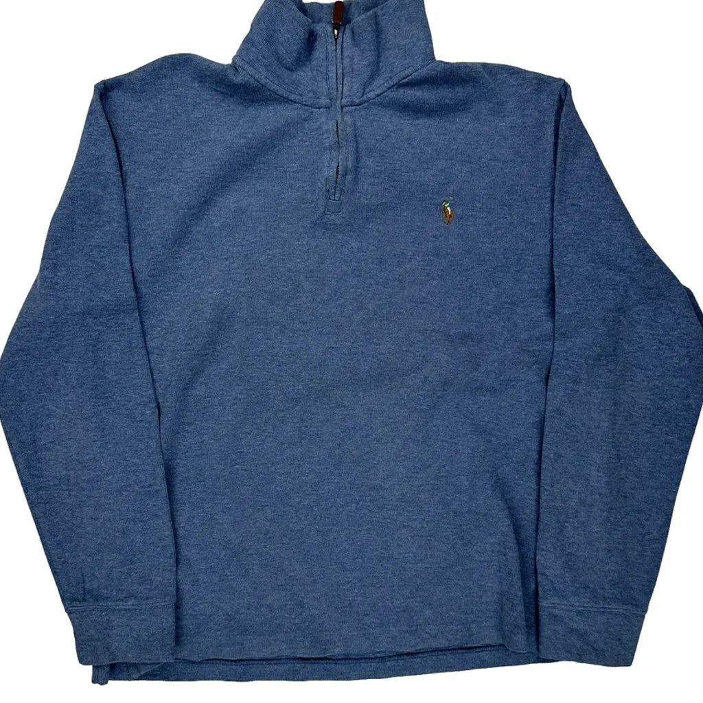 Polo By Ralph Lauren 1/4 Zip - Large Blue Cotton