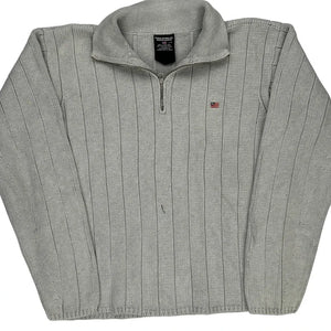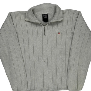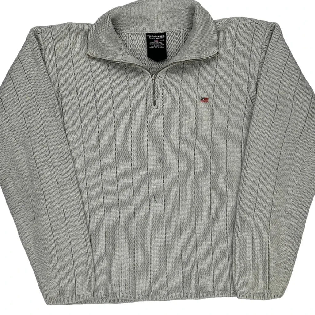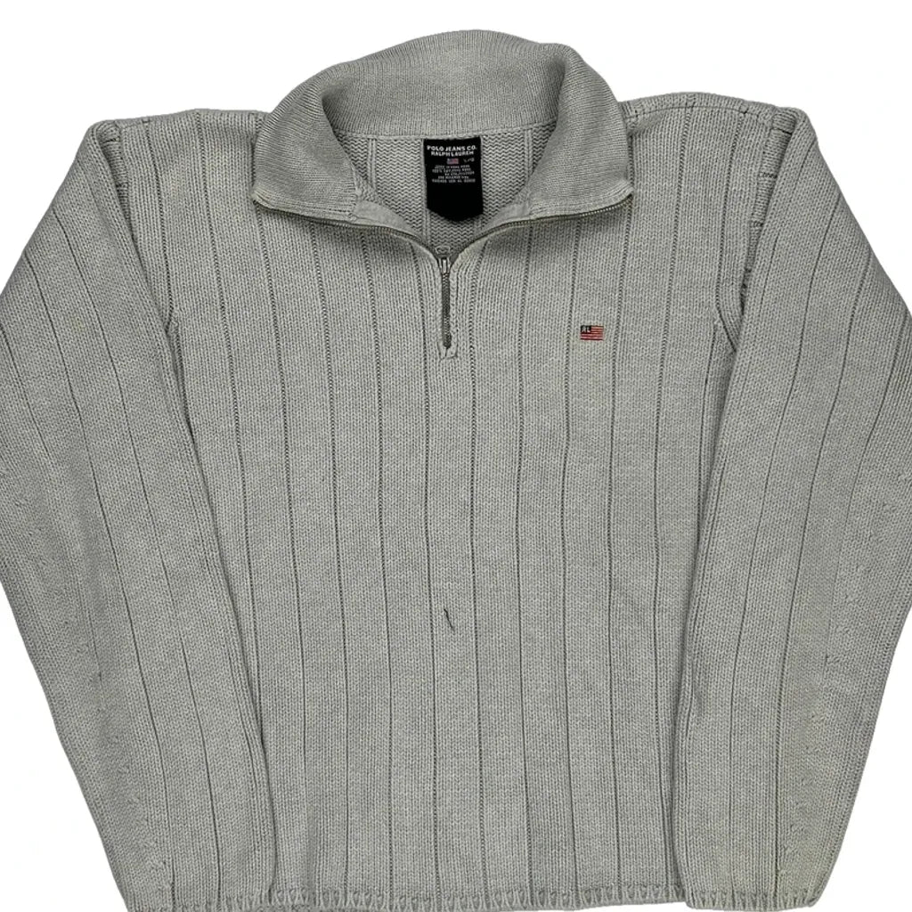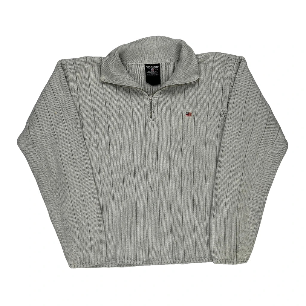 Polo By Ralph Lauren Striped 1/4 Zip - Large Grey Cotton